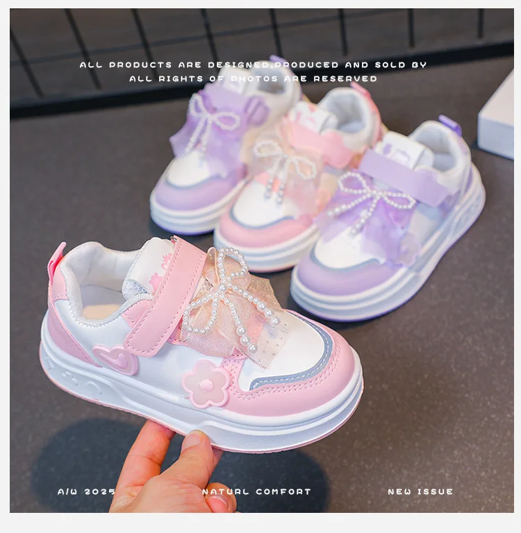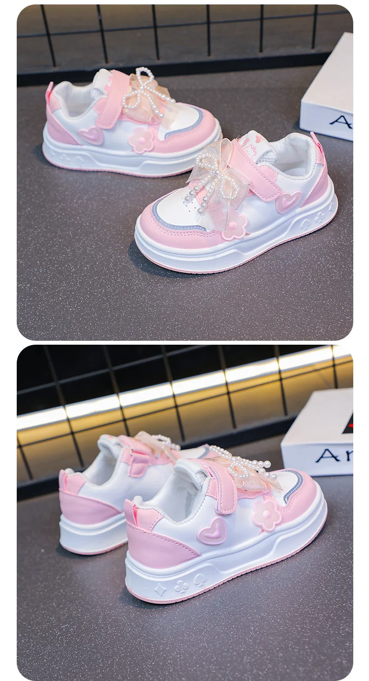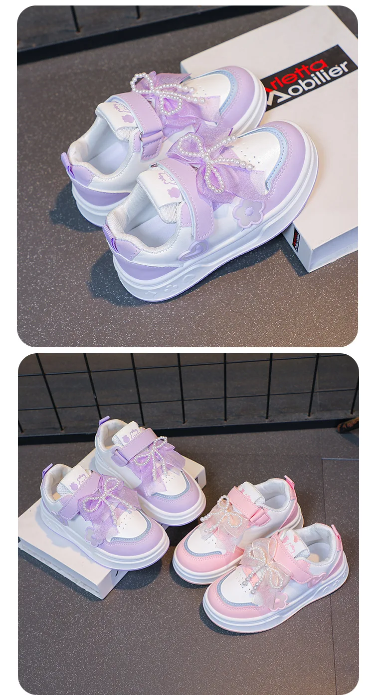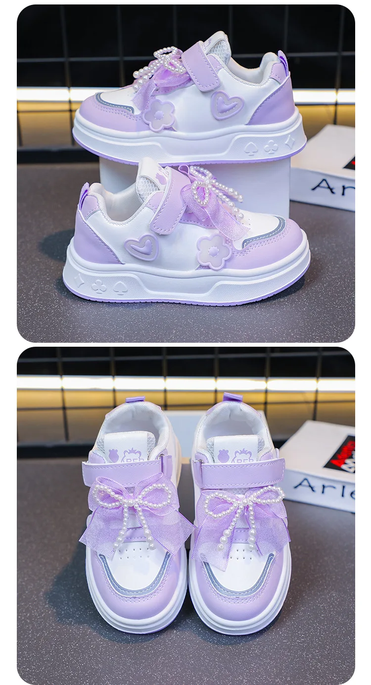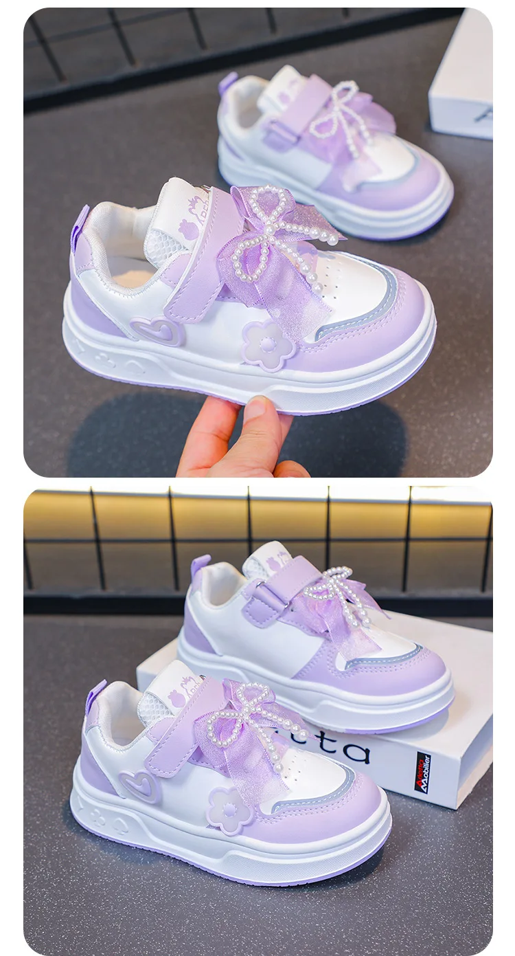 أحذية رياضية للفتيات خفيفة الوزن أحذية رياضية كاجوال للأميرة غير قابلة للانزلاق ونعل ناعم للأطفال الصغار أحذية تنس مدرسية أنيقة للفتيات
