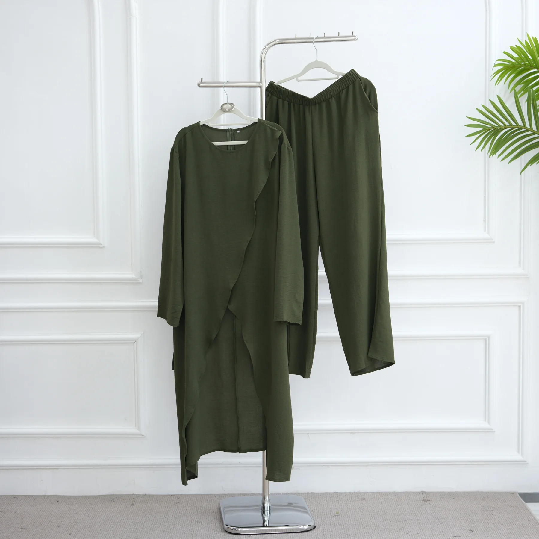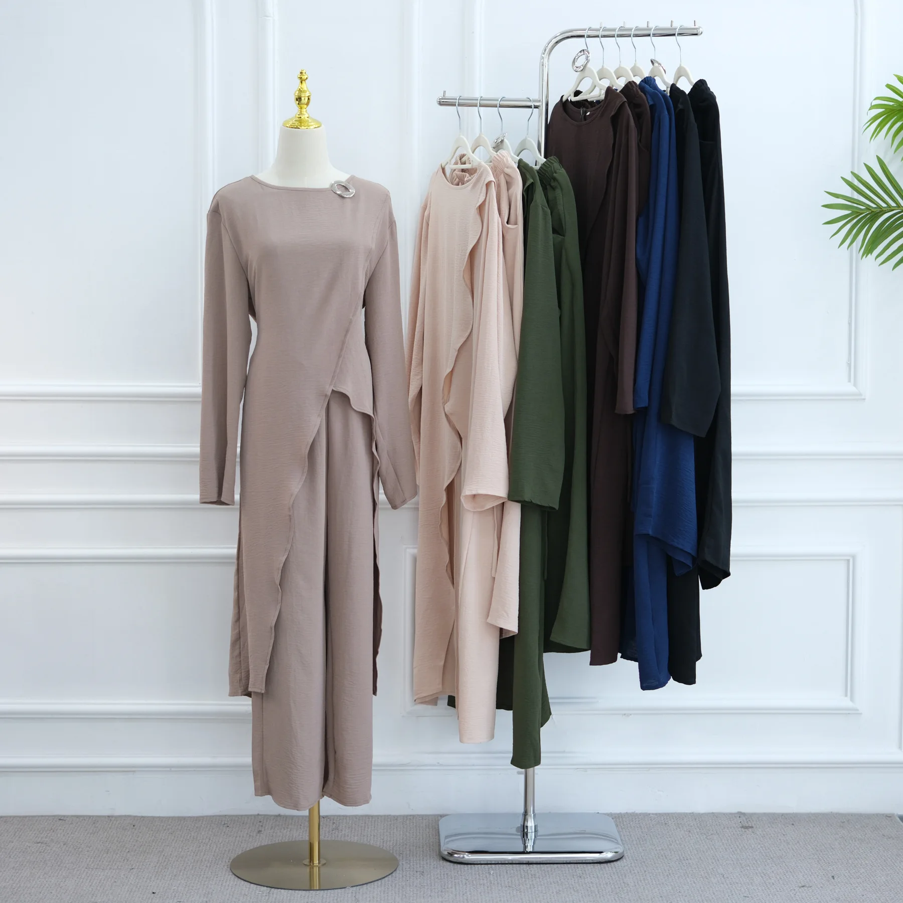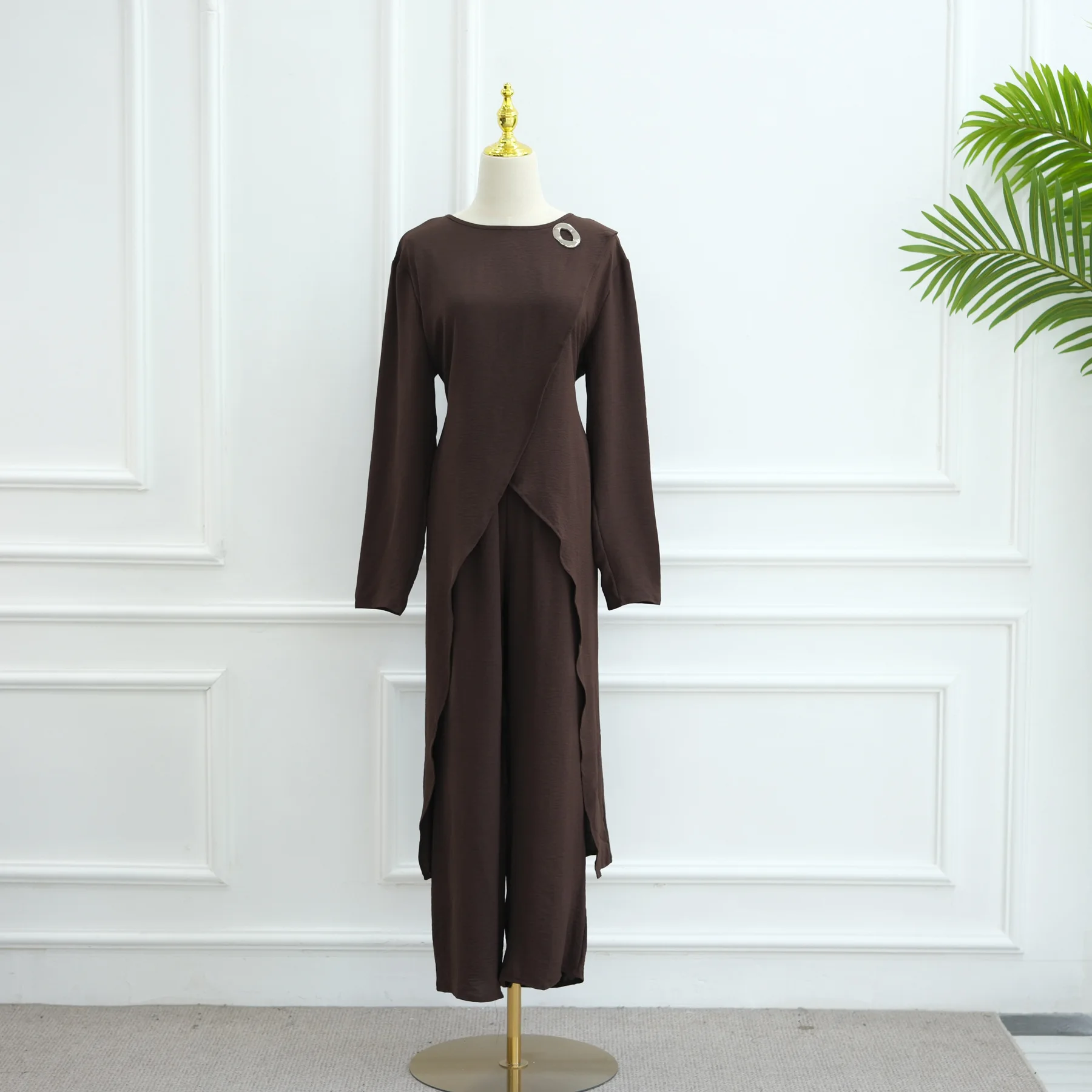 أزياء المرأة المسلمة مجموعة عباية دبي الملابس التركية السراويل وأعلى 2 قطعة دعوى مجموعات ملابس إسلامية متواضعة فرقة Musulmane