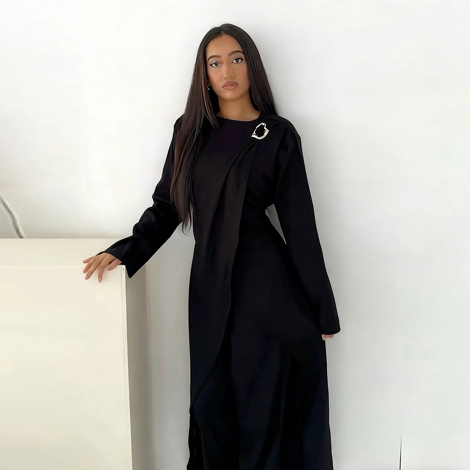 عبايات إسلامية جديدة للنساء فستان بأكمام طويلة دبي فستان طويل أنيق ملابس إسلامية عباية أفريقية رداء فضفاض مع عمامة