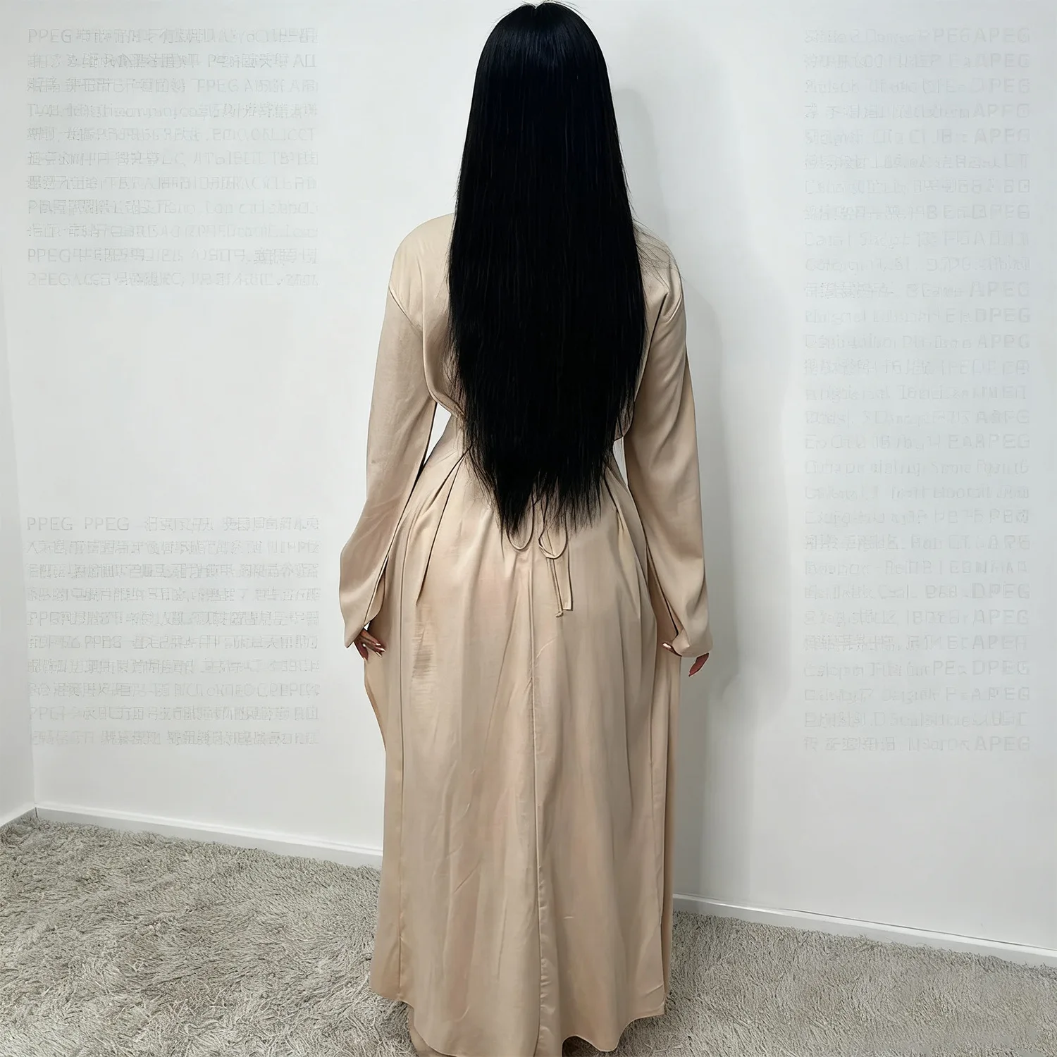 رمضان مسلم أنيق الخامس الرقبة الساتان التطريز الديكور عباية عادية للنساء جلابيات الخليج Bindalli كم طويل ثوب مسائي