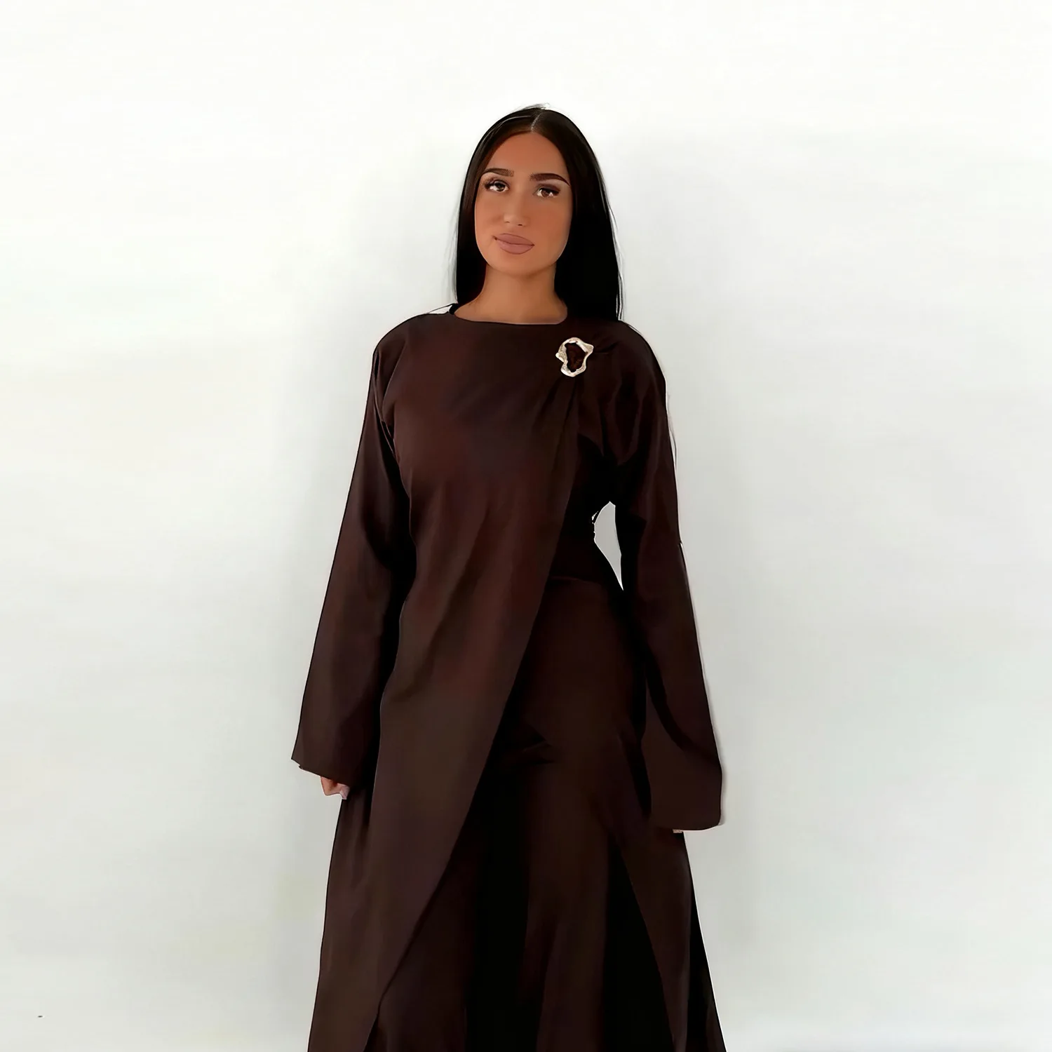 فستان فاخر عرقي جديد لعام 2025 عباية مفتوحة من الأمام لامعة مع فستان حجاب متواضع عباية دبي فستان نسائي مسلم