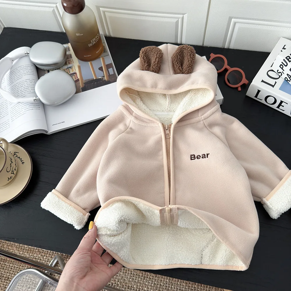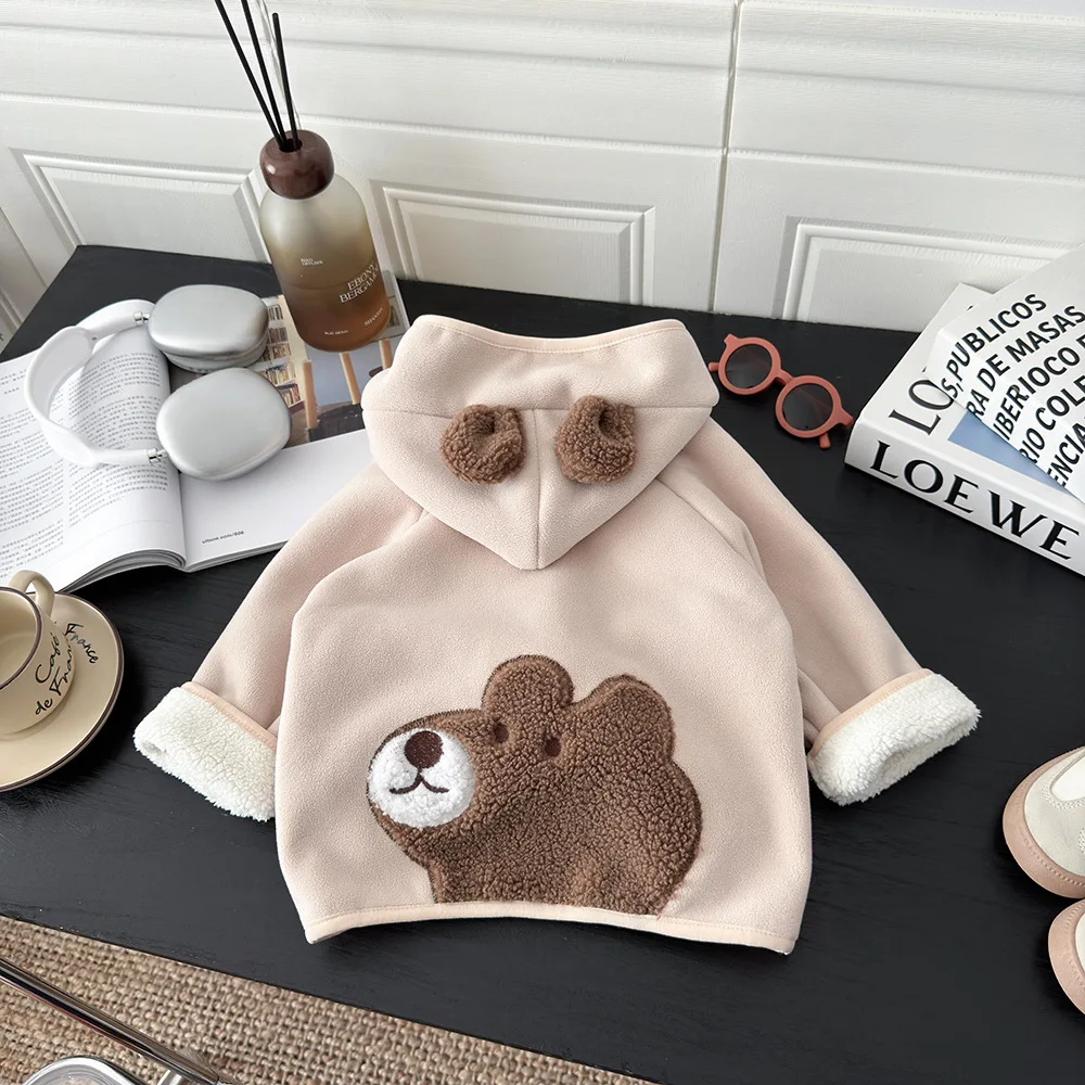 الشتاء طفل الفتيان جاكيت من الصوف للأطفال الكرتون الدب سستة معطف الخريف الصبي الدافئة مقنعين أسفل السترات الأطفال ملابس خارجية