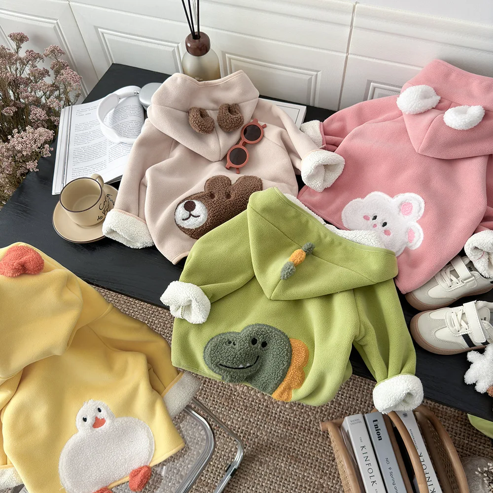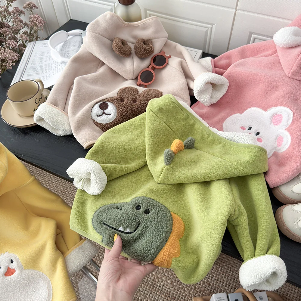 الأطفال سترة أفخم سميكة أعلى 2025 الخريف الشتاء ملابس الطفل الفتيان الفتيات الكرتون الحيوان معطف مقنع طفل ملابس خارجية