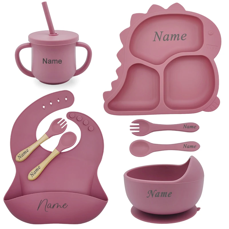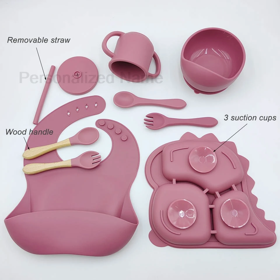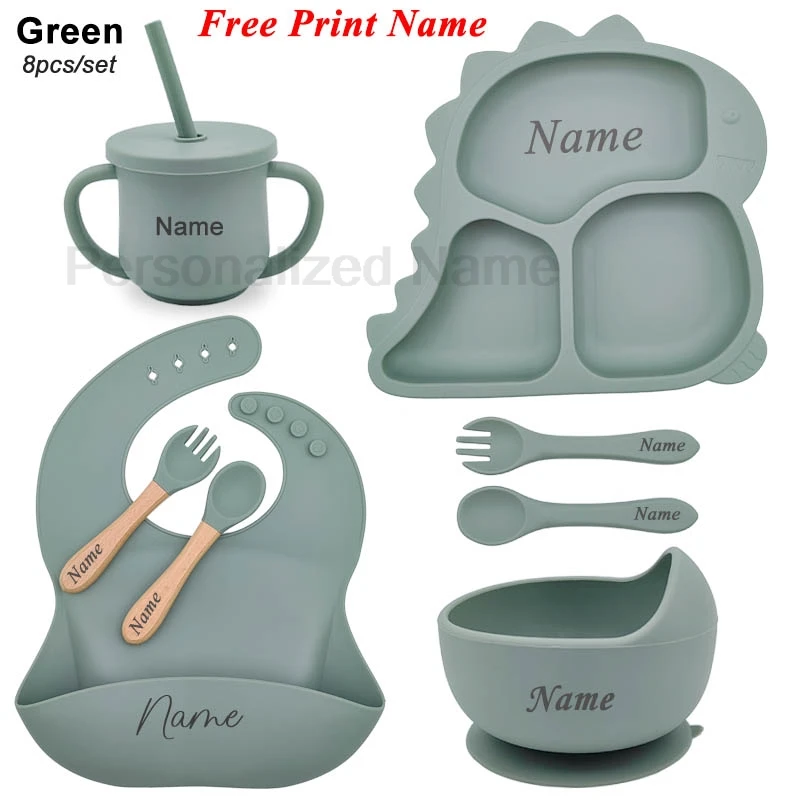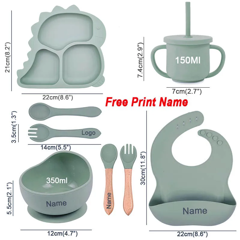 ديناصور الأطفال أطباق لوحة تغذية الطفل مجموعة شخصية اسم أدوات مائدة من السيليكون للأطفال الصغار التدريب السلطانية الطفل الاشياء