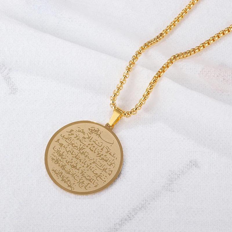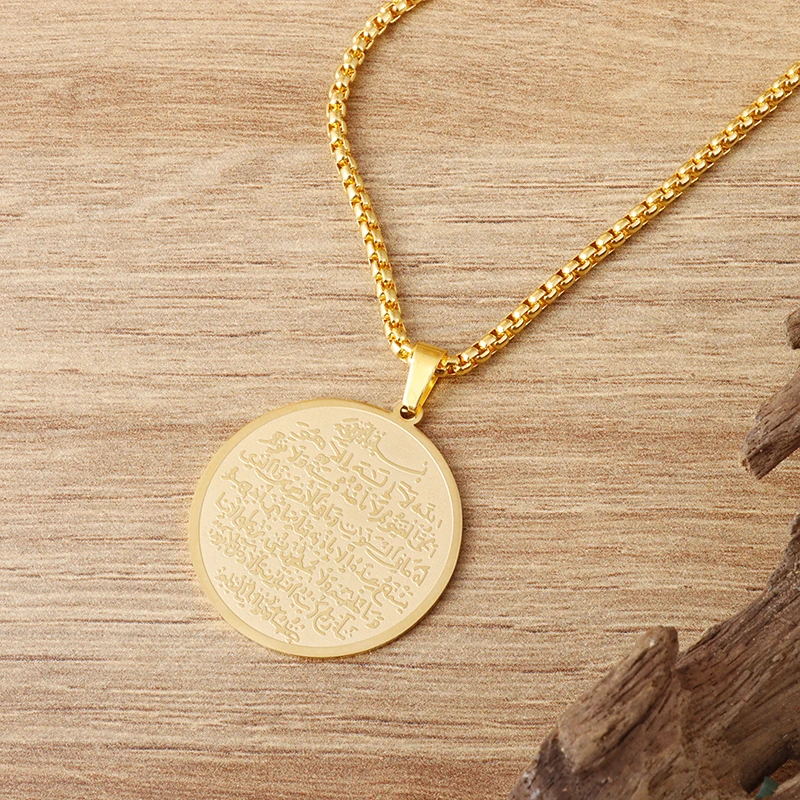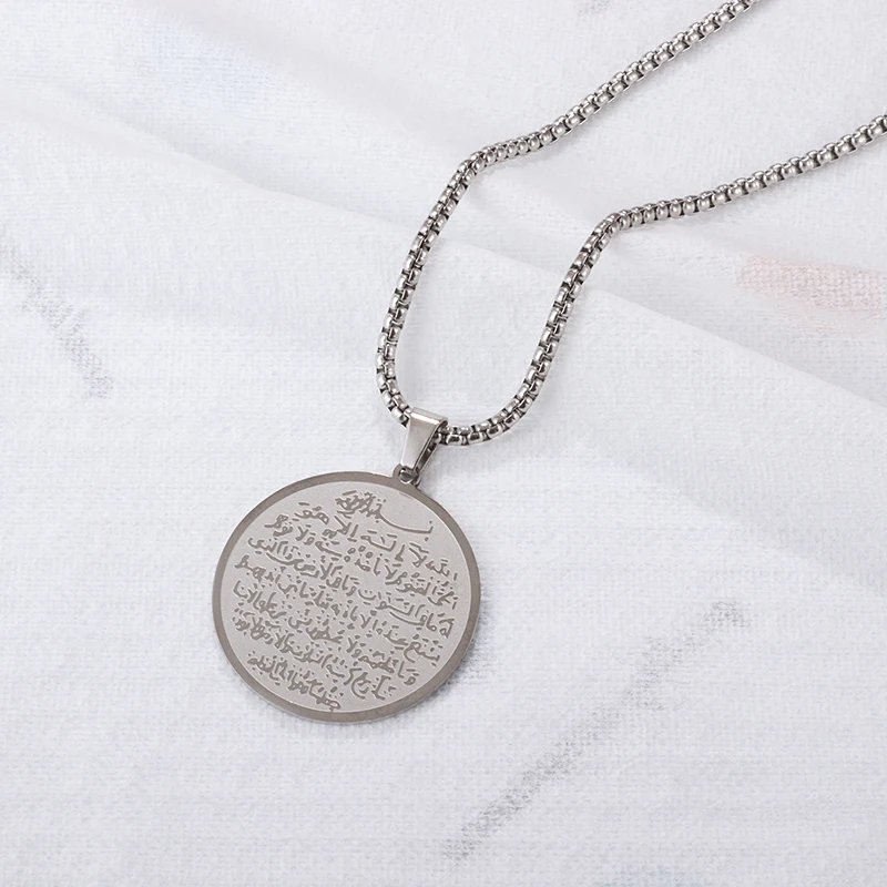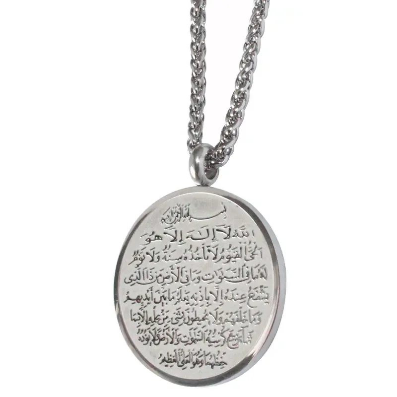 قلادة بدلاية بار مستطيلة للرجال والنساء ، فولاذ مقاوم للصدأ ، آياتول كورسي سوترا ، مجوهرات عربية بسيطة ، هدايا إسلامية ، أزياء ثلاثية الأبعاد