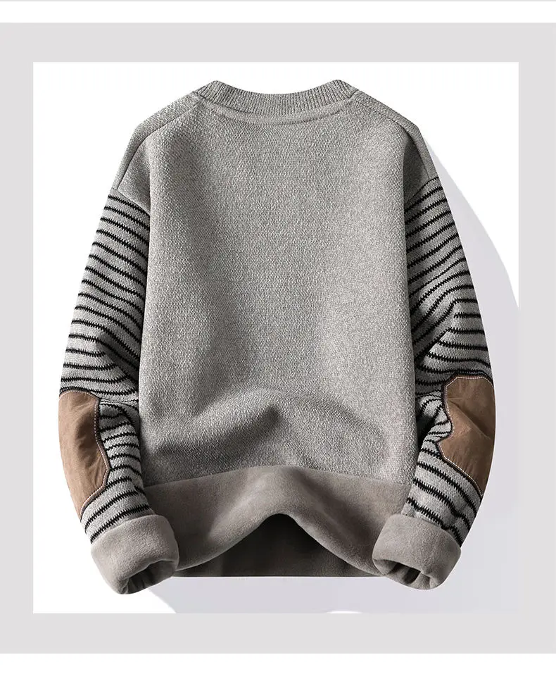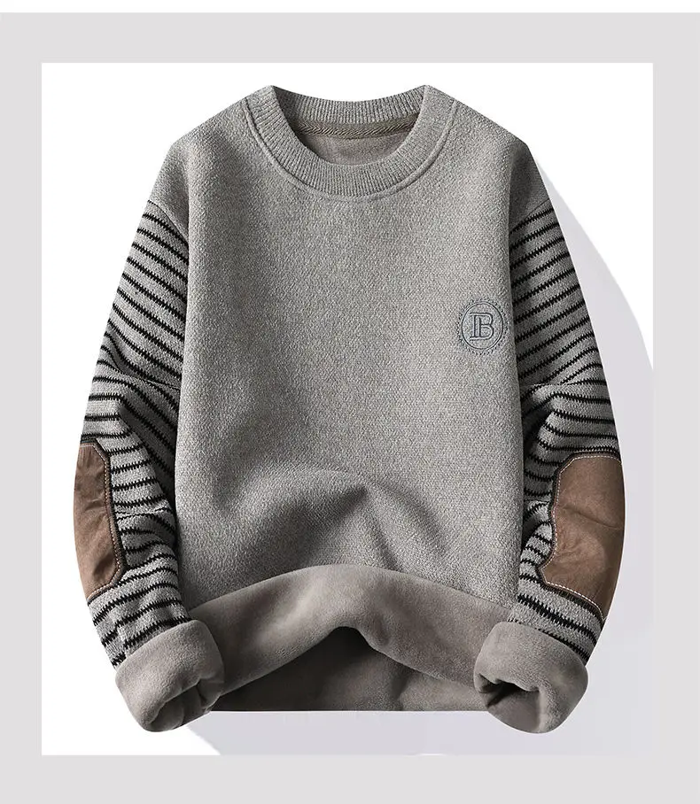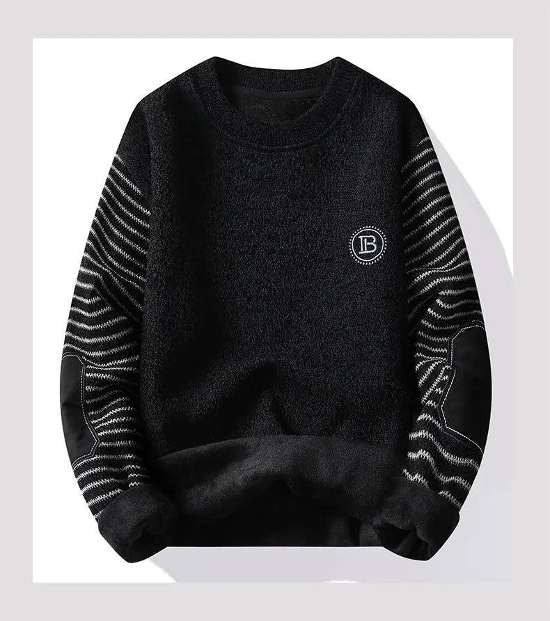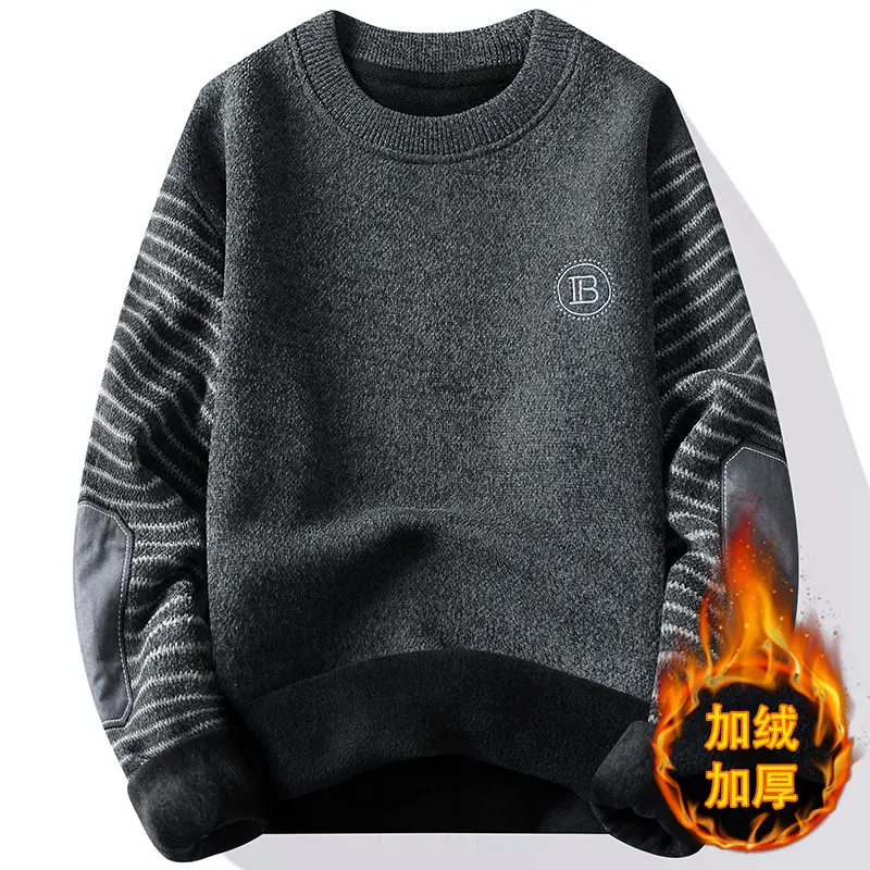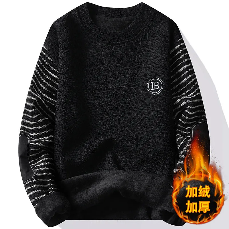 سترة رجالية برقبة دائرية مع صوف ، سترة سميكة للغاية ، سترة صوفية دافئة ، الخريف والشتاء