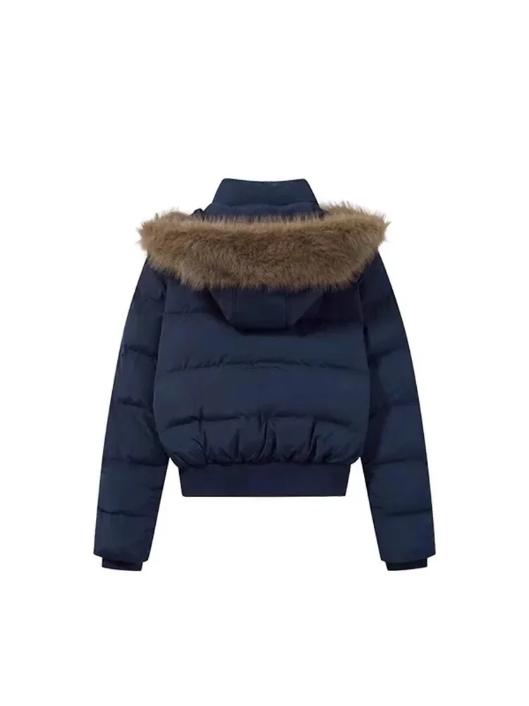 سترة قطنية ذات ياقة من الفرو الأزرق التبتي بتصميم جديد لعام 2025 لموسم الشتاء النسائي سترة قطنية سميكة وقصيرة