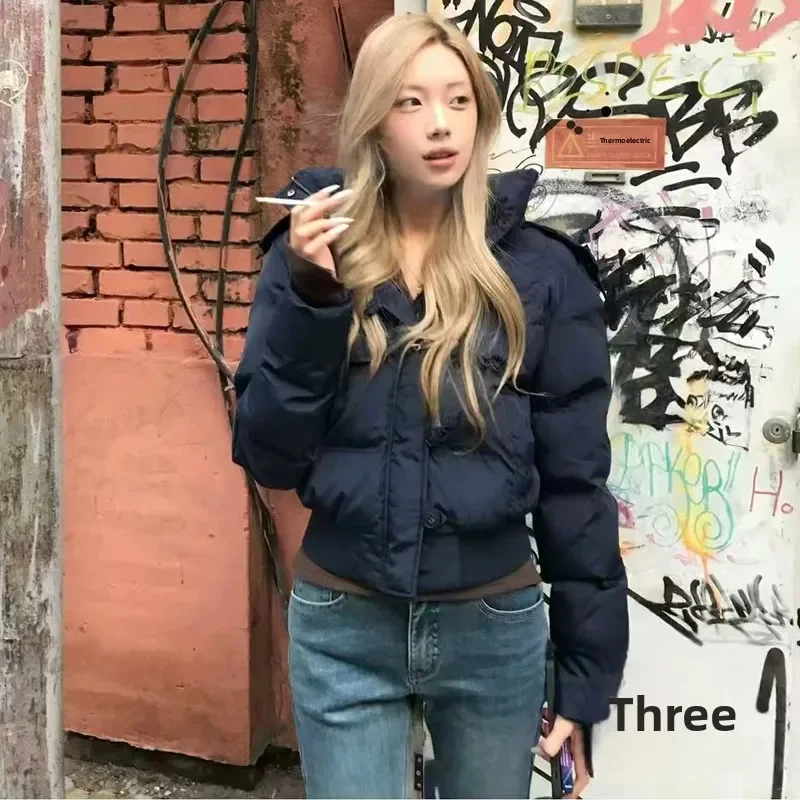 أزياء من الدانتل حتى سترة قطن المرأة عارضة الوقوف طوق واحدة الصدر جيب فضفاض ملابس خارجية سيدة الشتاء اليومية الشارع الستر