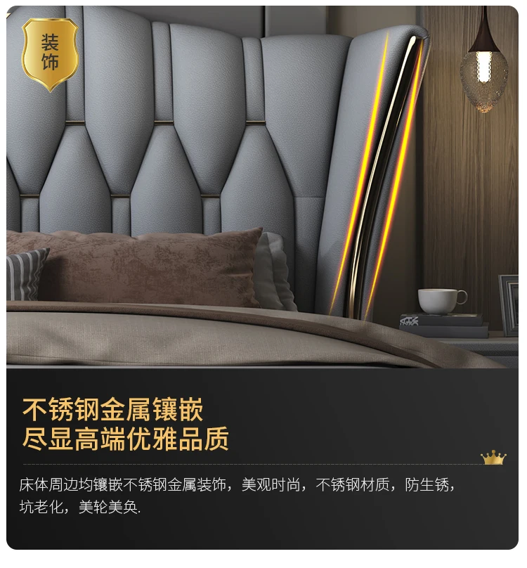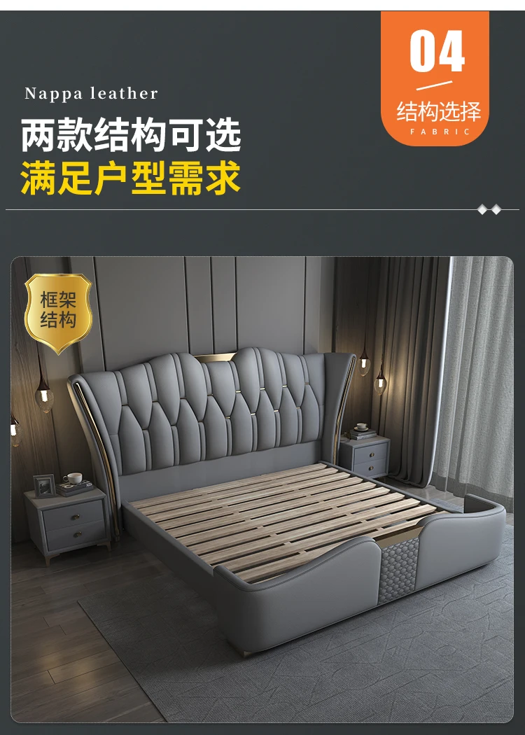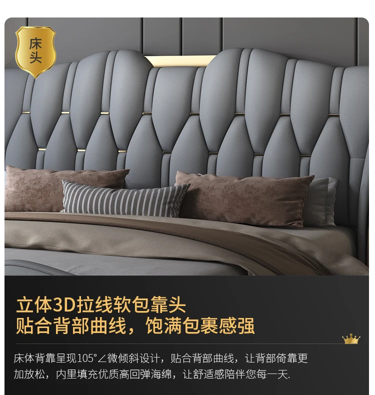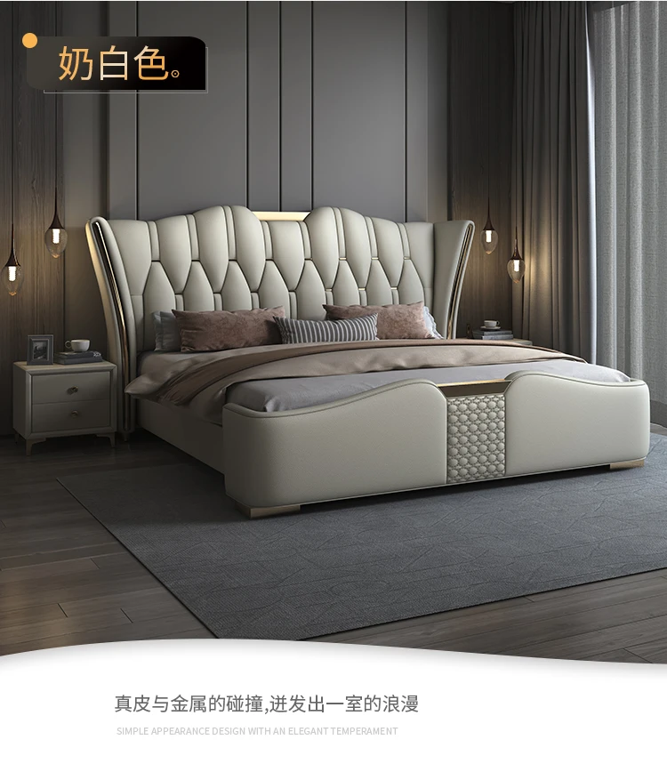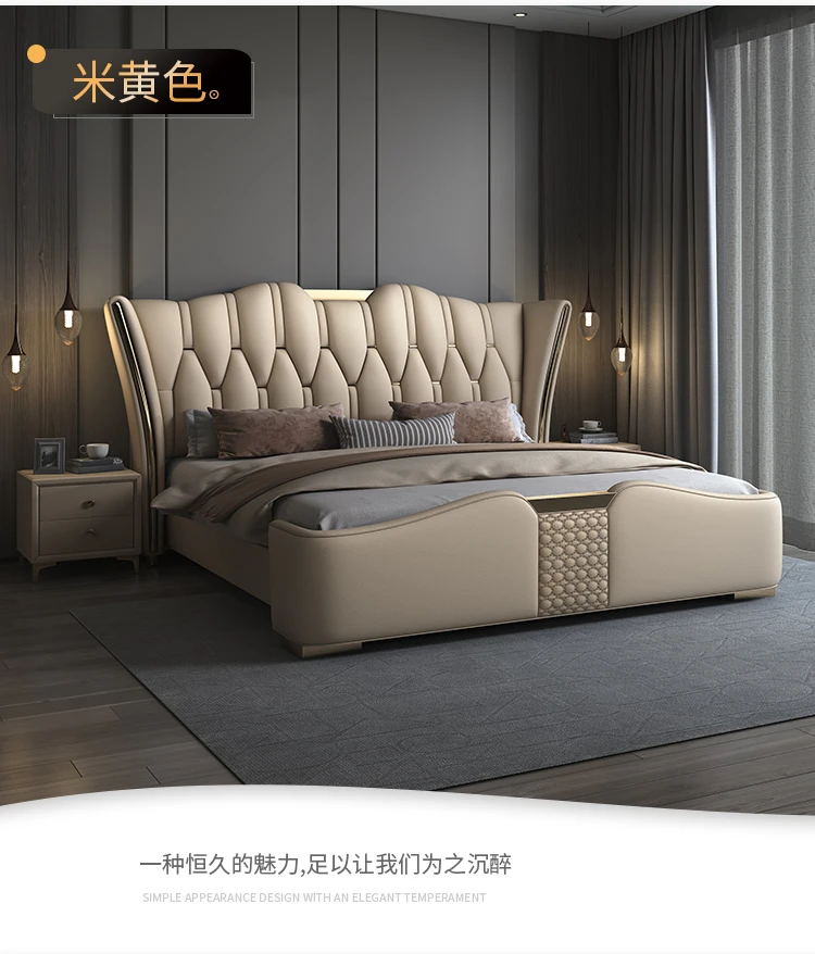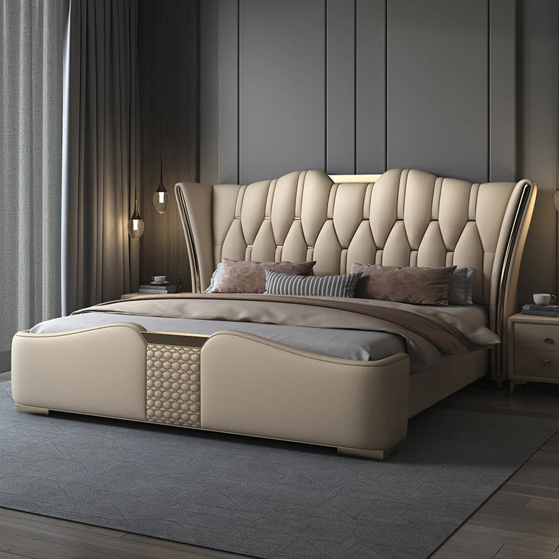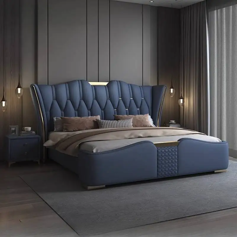 هيكل سرير ذكي كاماس غرفة نوم كرواكة ثنائية الشكل سرير مضاء سرير موبليس دي دورميتوريو ميسبيل مصباح ليد جلد طبيعي مستدير