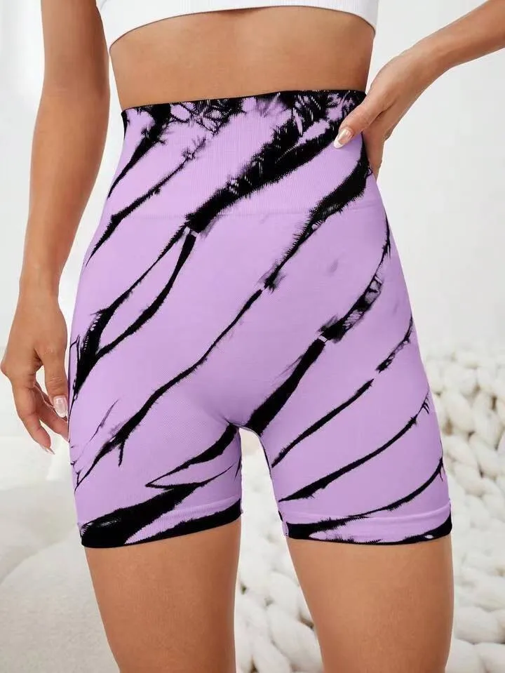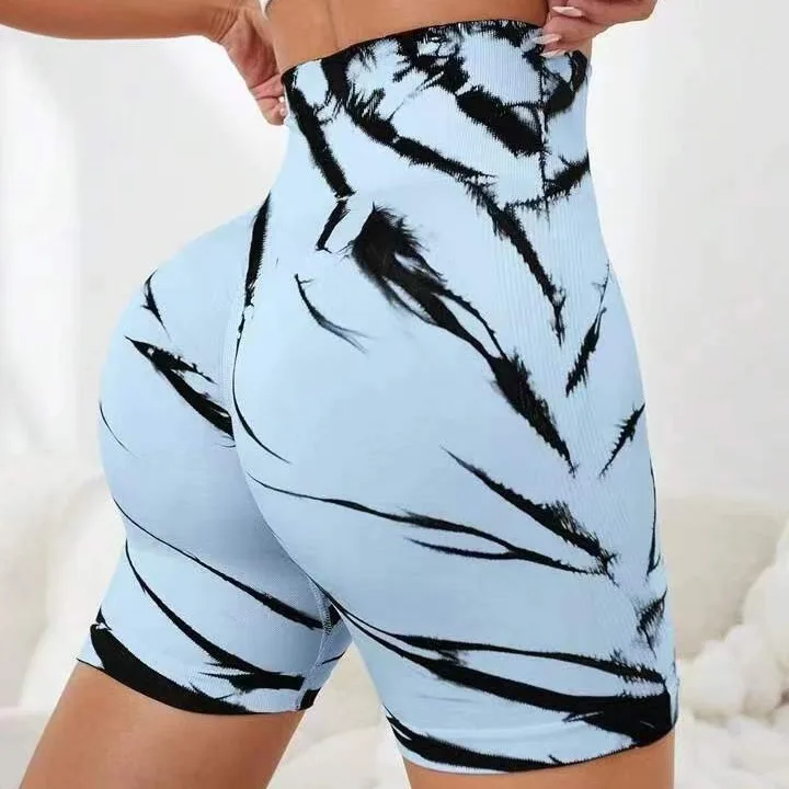 شورت رياضي عالي الخصر للنساء ، شورت رياضي بدون خياطة لراكبي الدراجات ، ملابس رياضية لرفع المؤخرة ، شورت رياضي لليوجا ، صبغة ربطة عنق