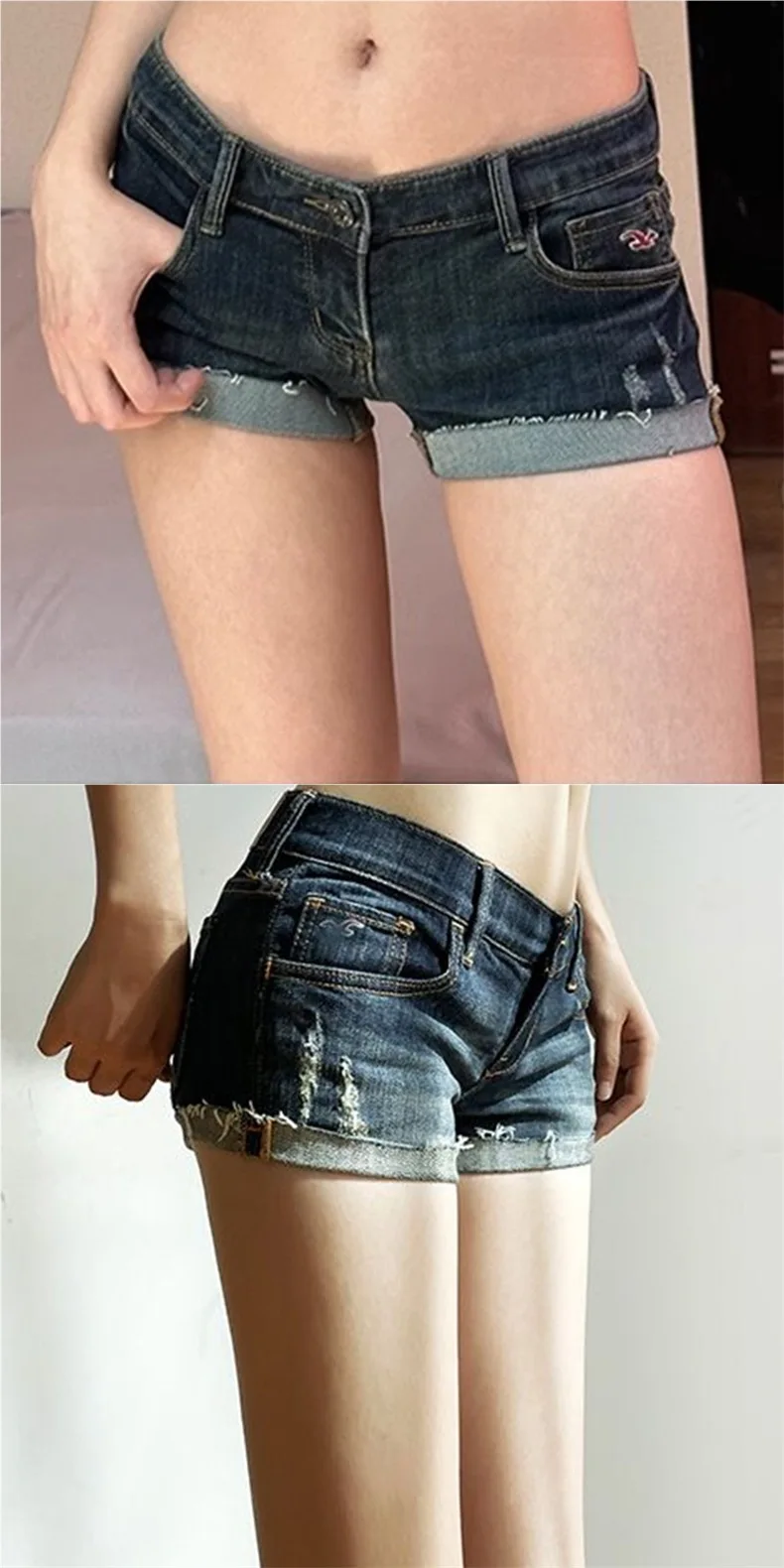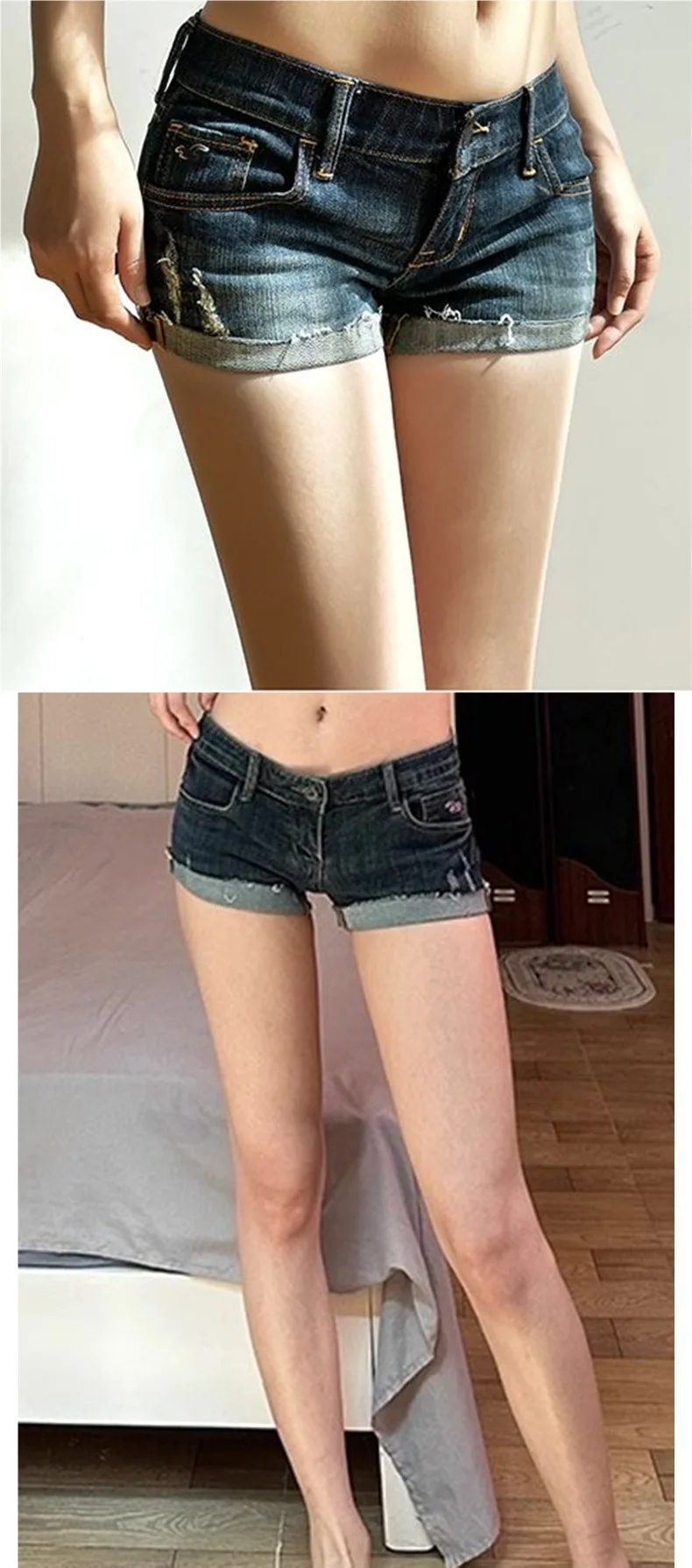 أسود مثير منخفضة الخصر Y2K شورتات جينز امرأة الشرير القوطية الدنيم سوبر السراويل الإناث الكورية موضة Slin صالح السراويل القصيرة الساخنة 2025