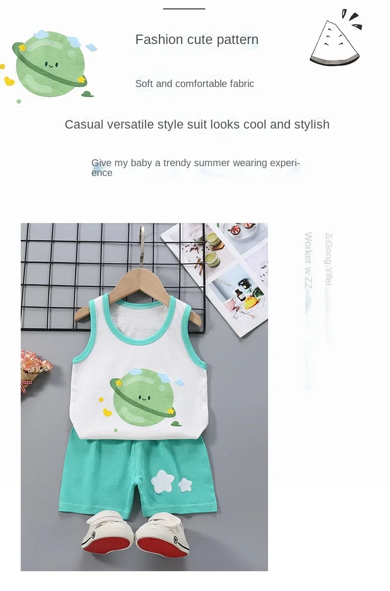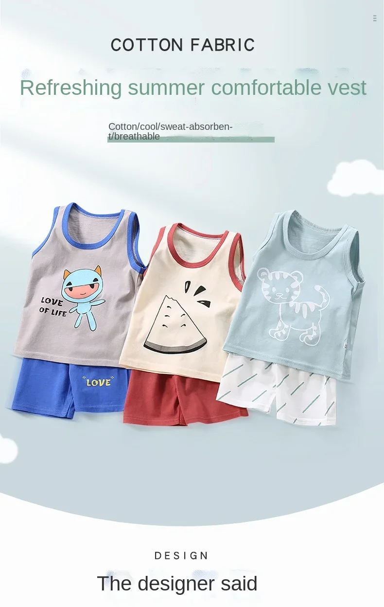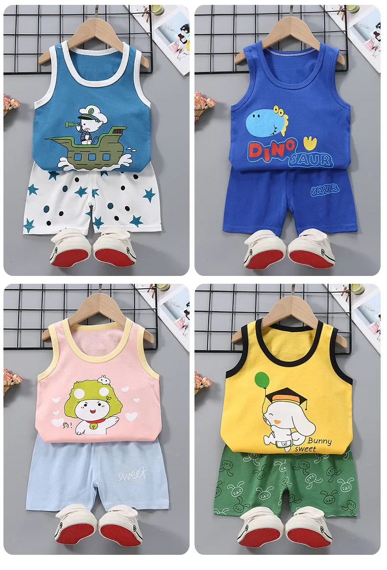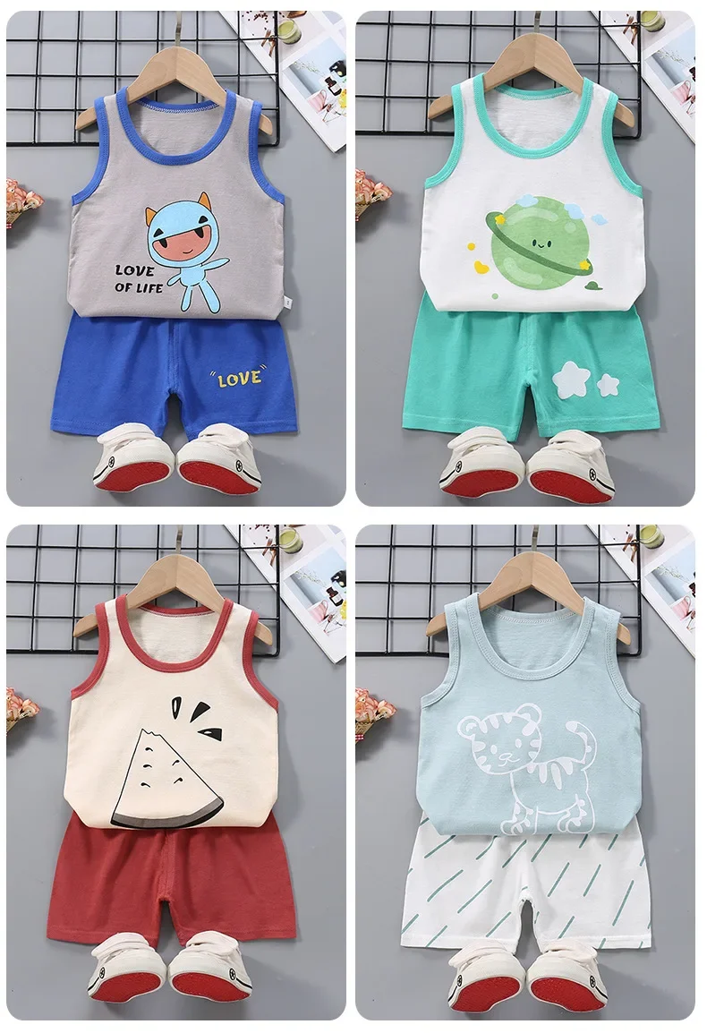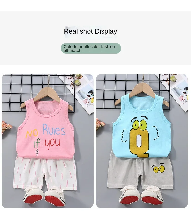 2 قطعة مجموعات الأطفال ملابس الاطفال سترة دعوى الصيف ملابس الأطفال الطفل تي شيرتات قطن السراويل تانك القمم الفتيان الفتيات أكمام