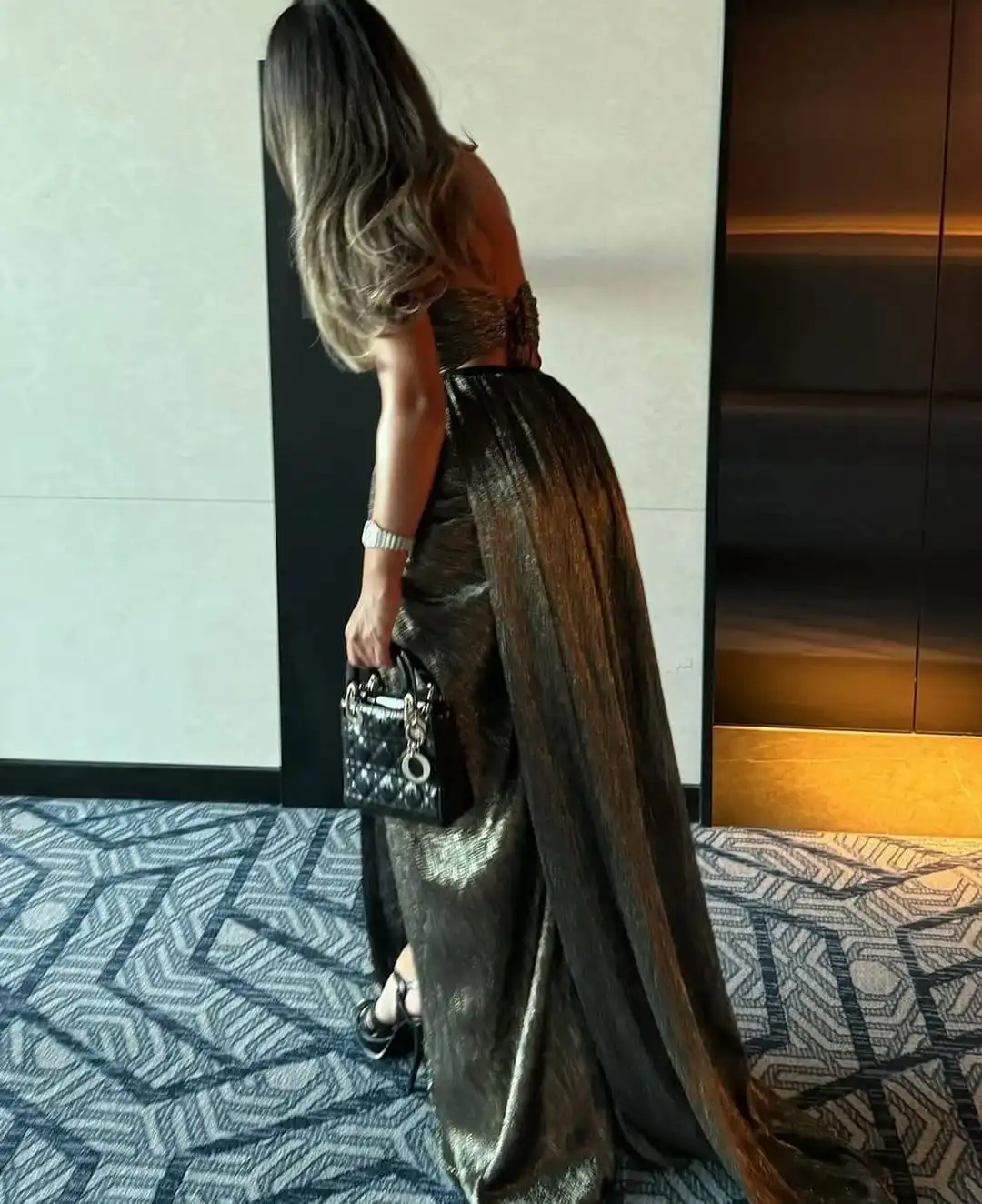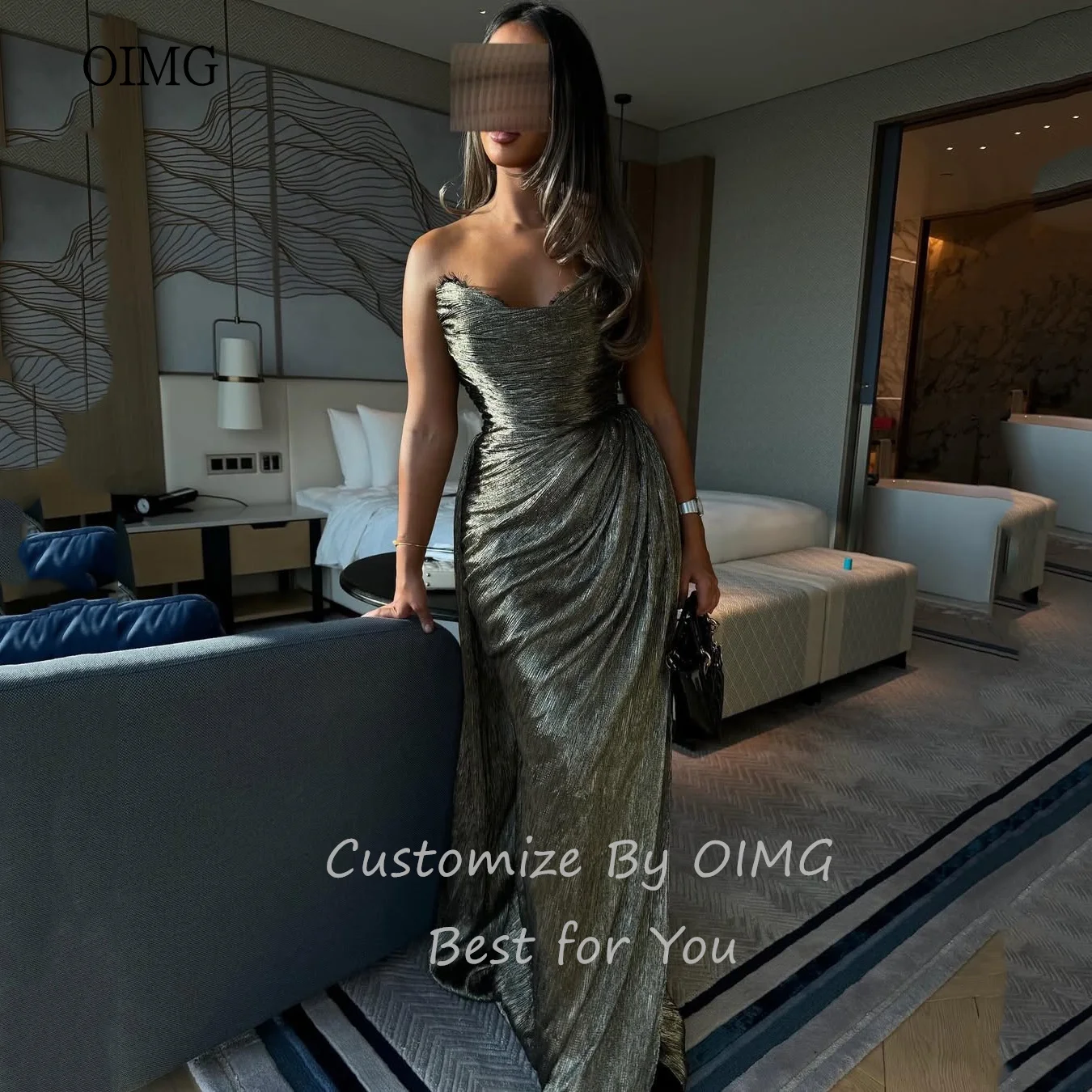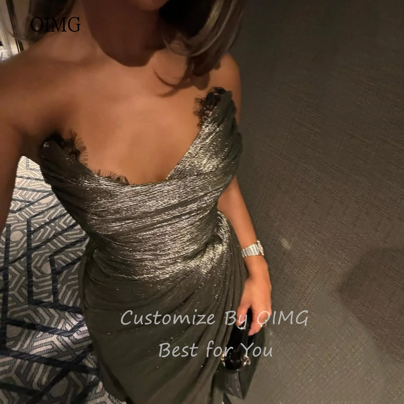 فستان حفلات حورية البحر بدون حمالات من الدانتيل اللامع من OIMG بدون ظهر مطوي للحفلات بطول الأرض فستان سهرة 2025 مخصص