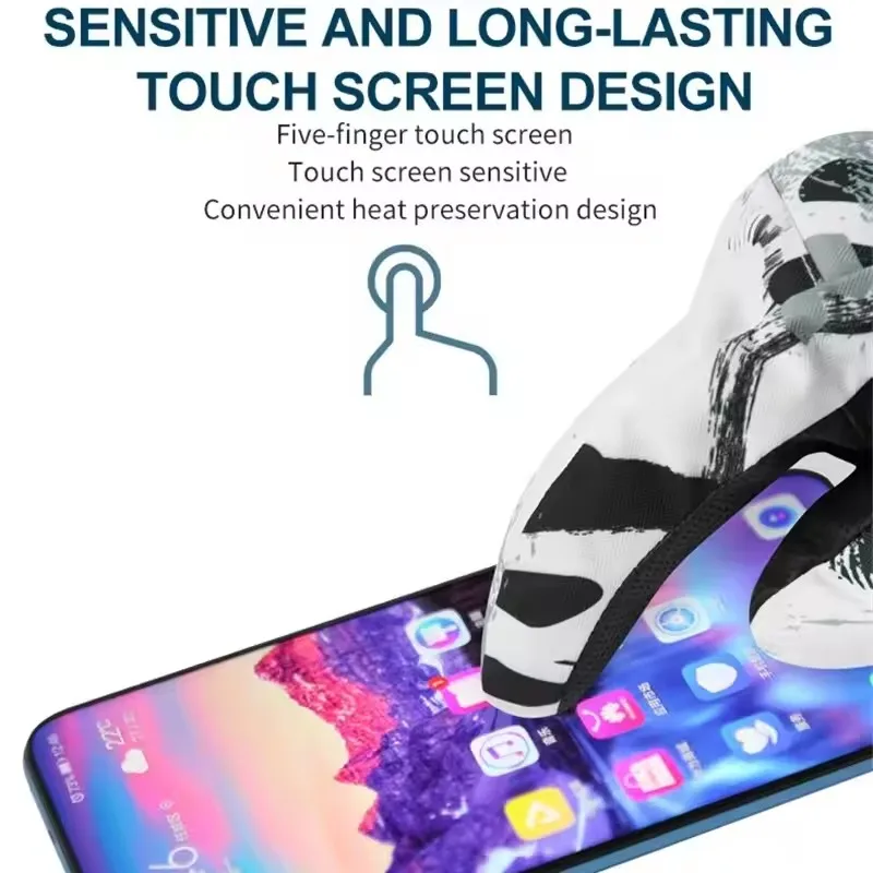 قفازات تزلج سميكة مطبوعة على الجدران للجنسين في الهواء الطلق لركوب الدراجات الرياضية قفازات صوف دافئة دراجة كهربائية ركوب الدراجات قفازات رياضية للعمل