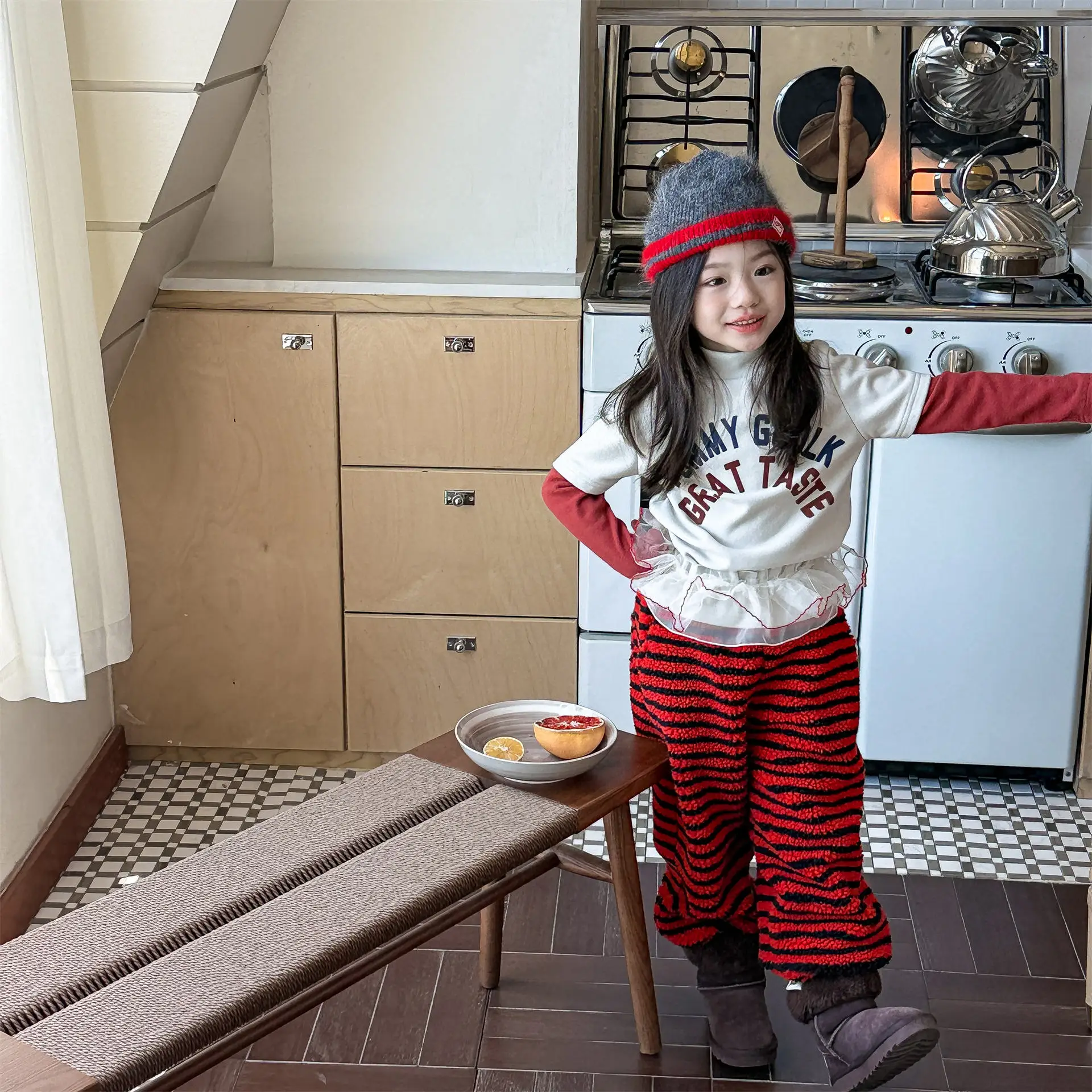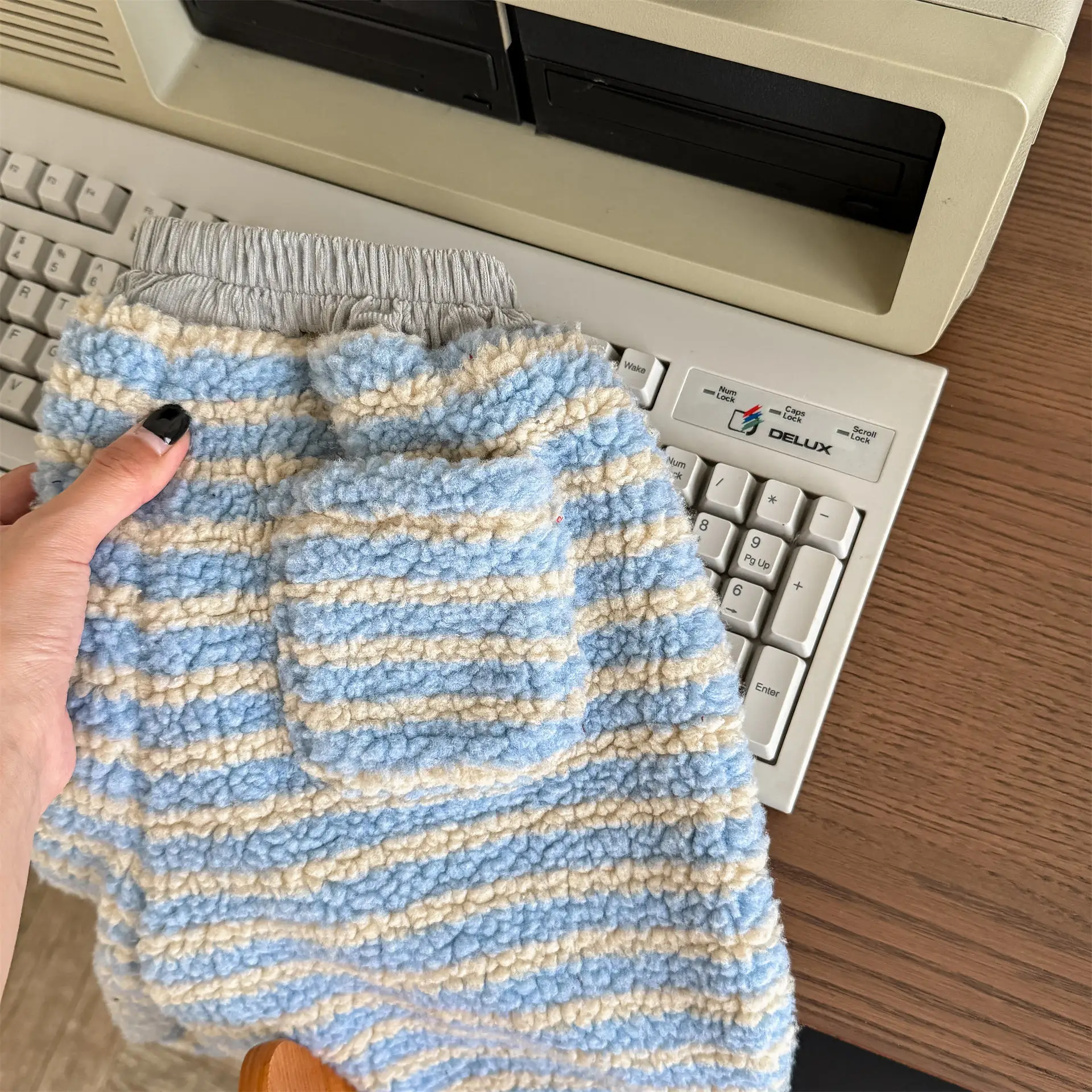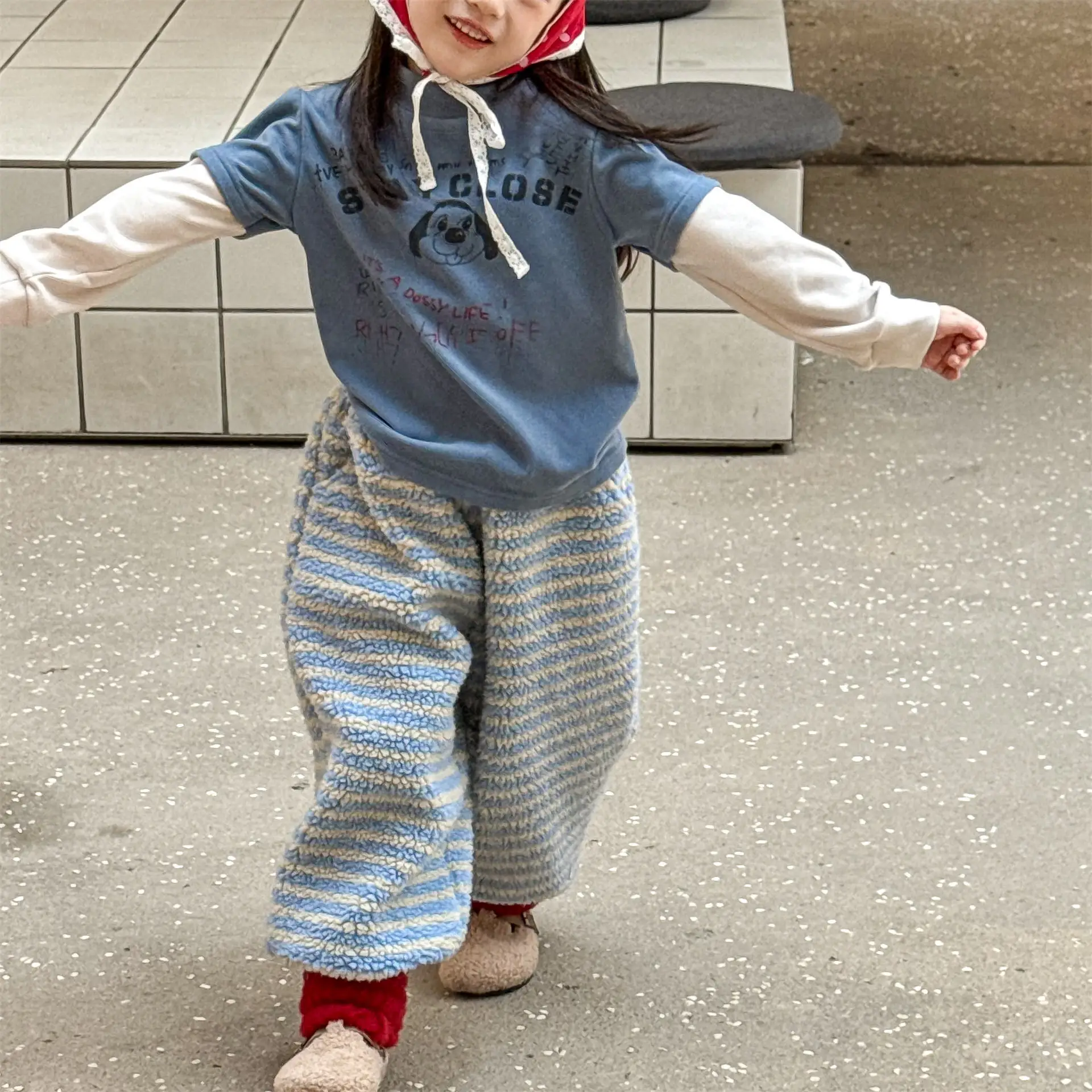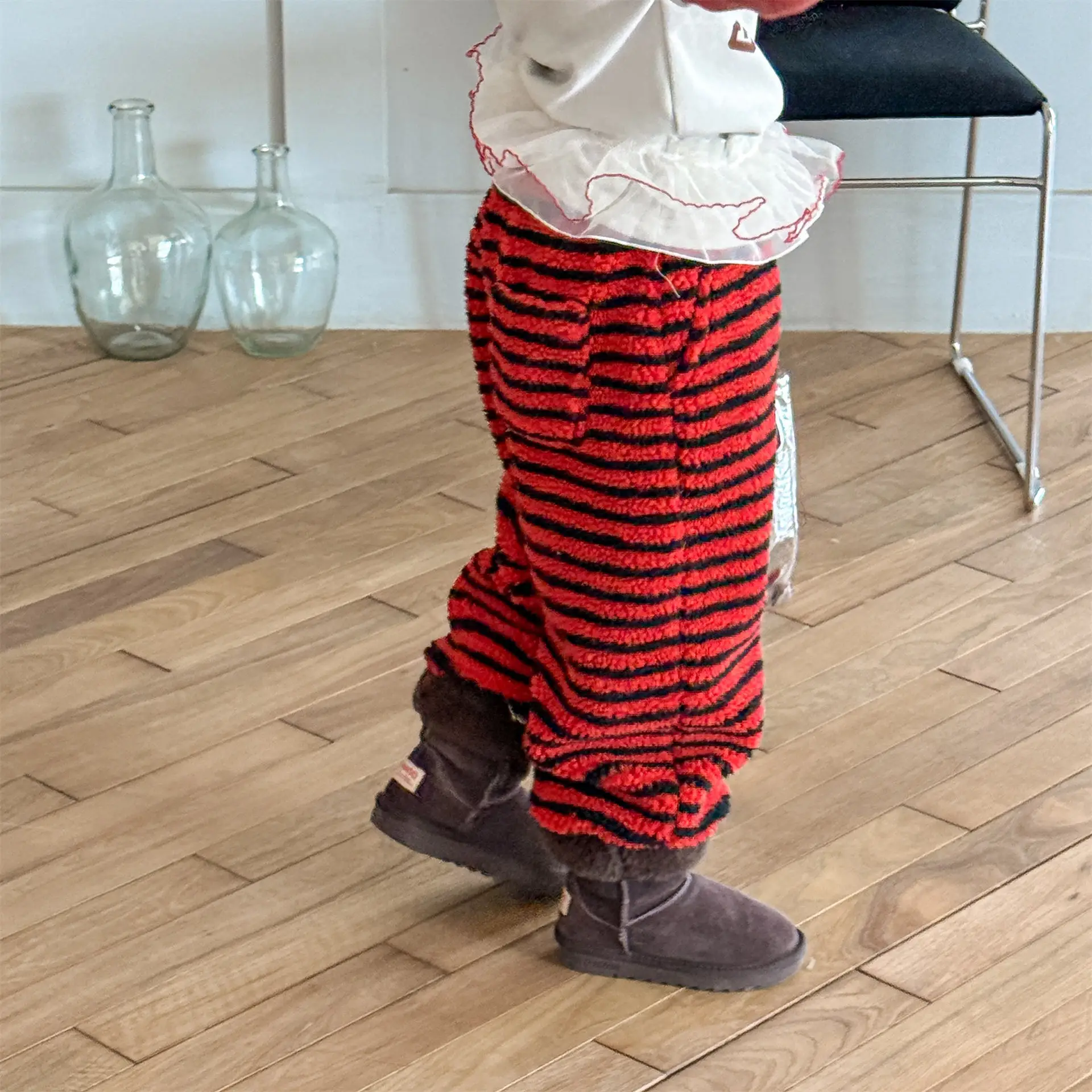 ملابس أطفال شتوية من LILIIGIRL 2025 سراويل مخططة للفتيات وبطانة من الفرو سراويل للأولاد دافئة على الطراز الكوري سراويل سميكة للأولاد