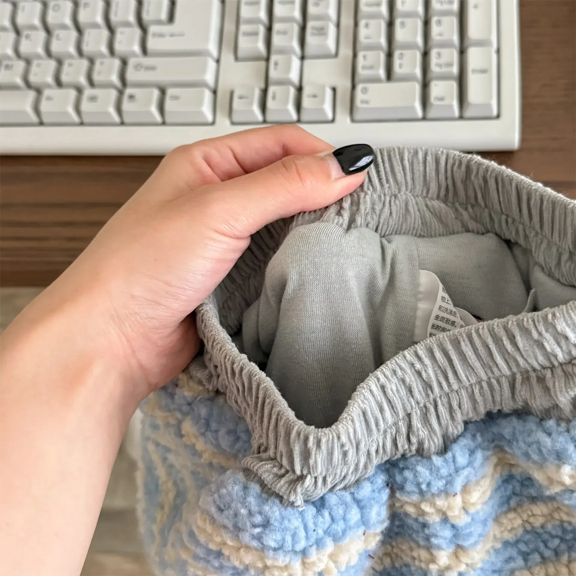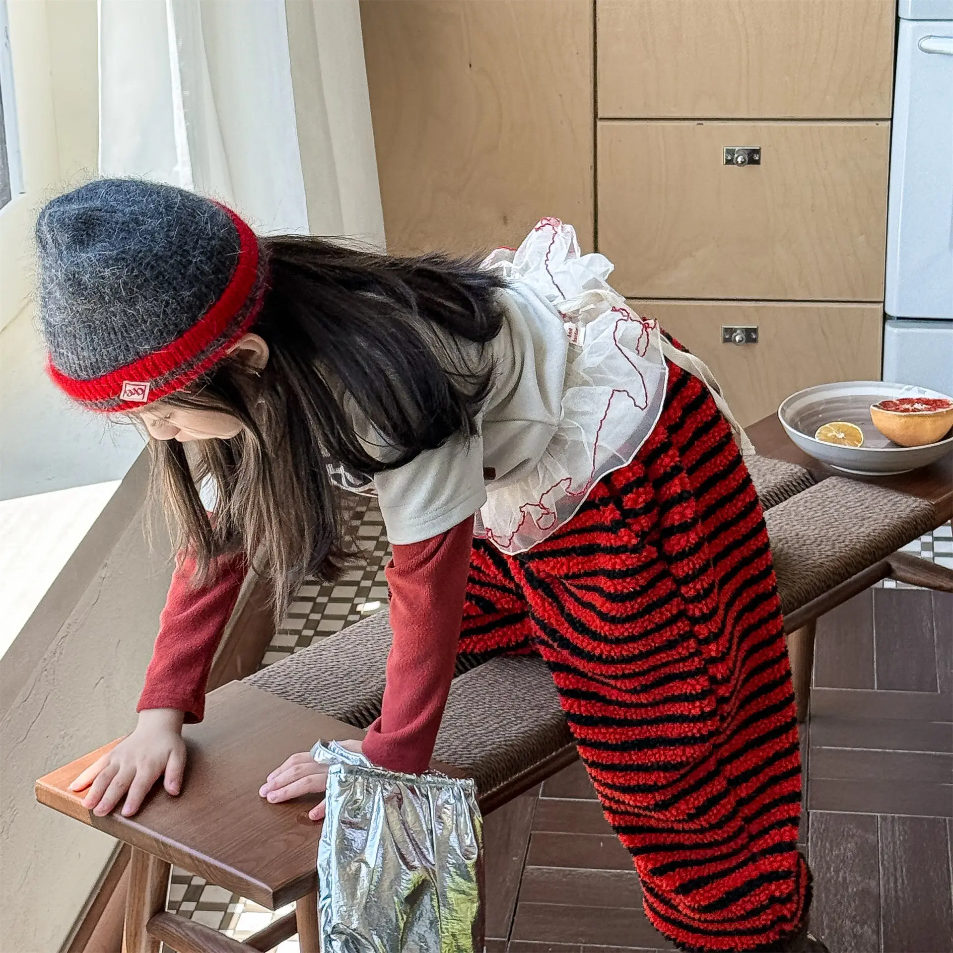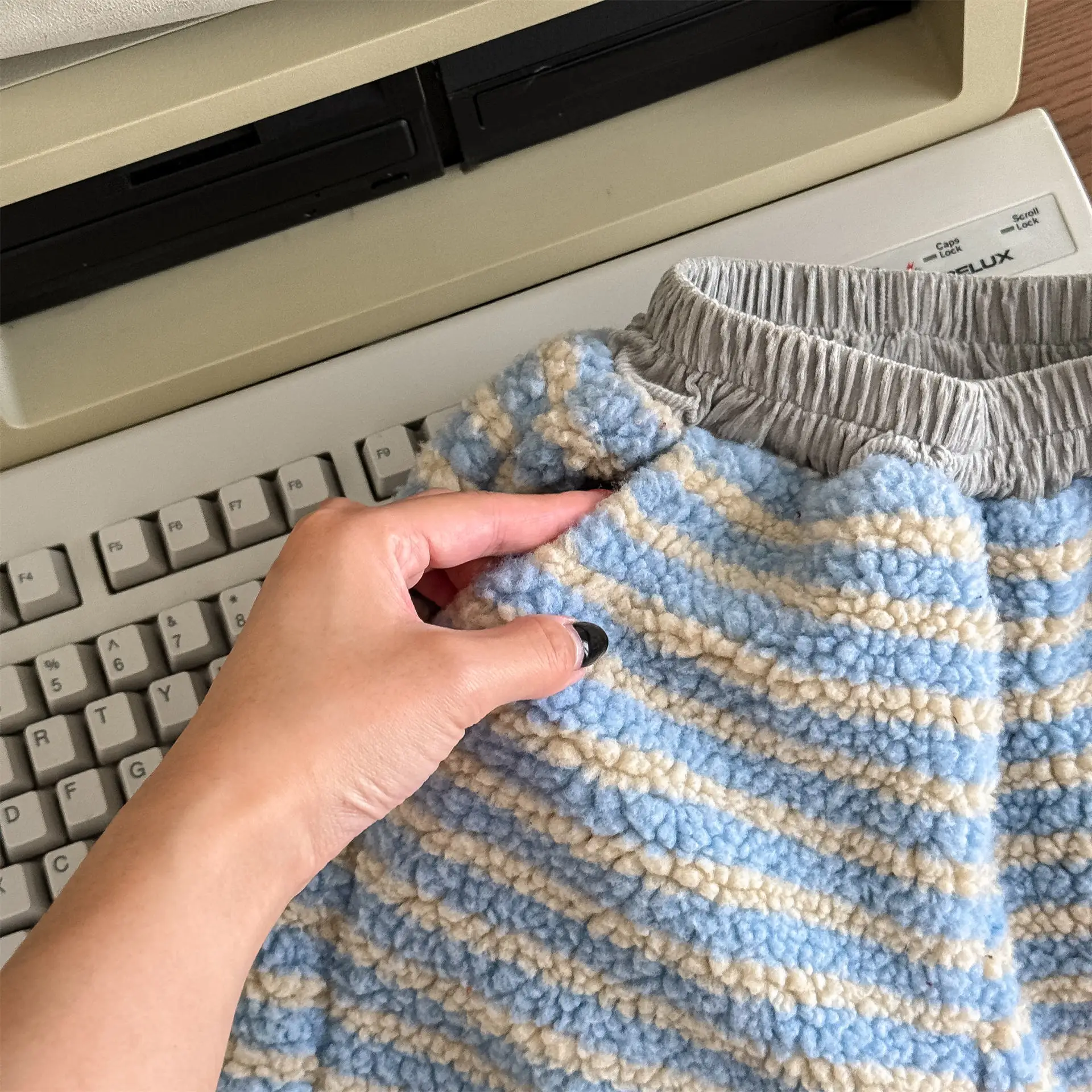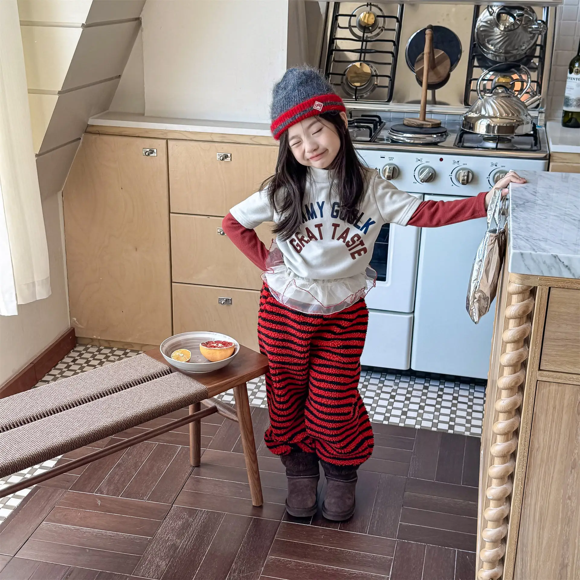 ملابس أطفال شتوية من LILIIGIRL 2025 سراويل مخططة للفتيات وبطانة من الفرو سراويل للأولاد دافئة على الطراز الكوري سراويل سميكة للأولاد