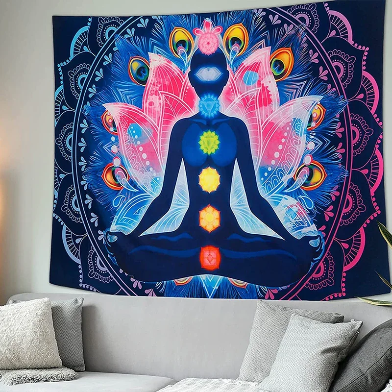 نسيج شاكرا السبعة للتأمل ، ديكور جدار البوذية الهندية ، نسيج ماندالا ، هيبي بوهيمي سحري ، ديكور منزلي لليوجا