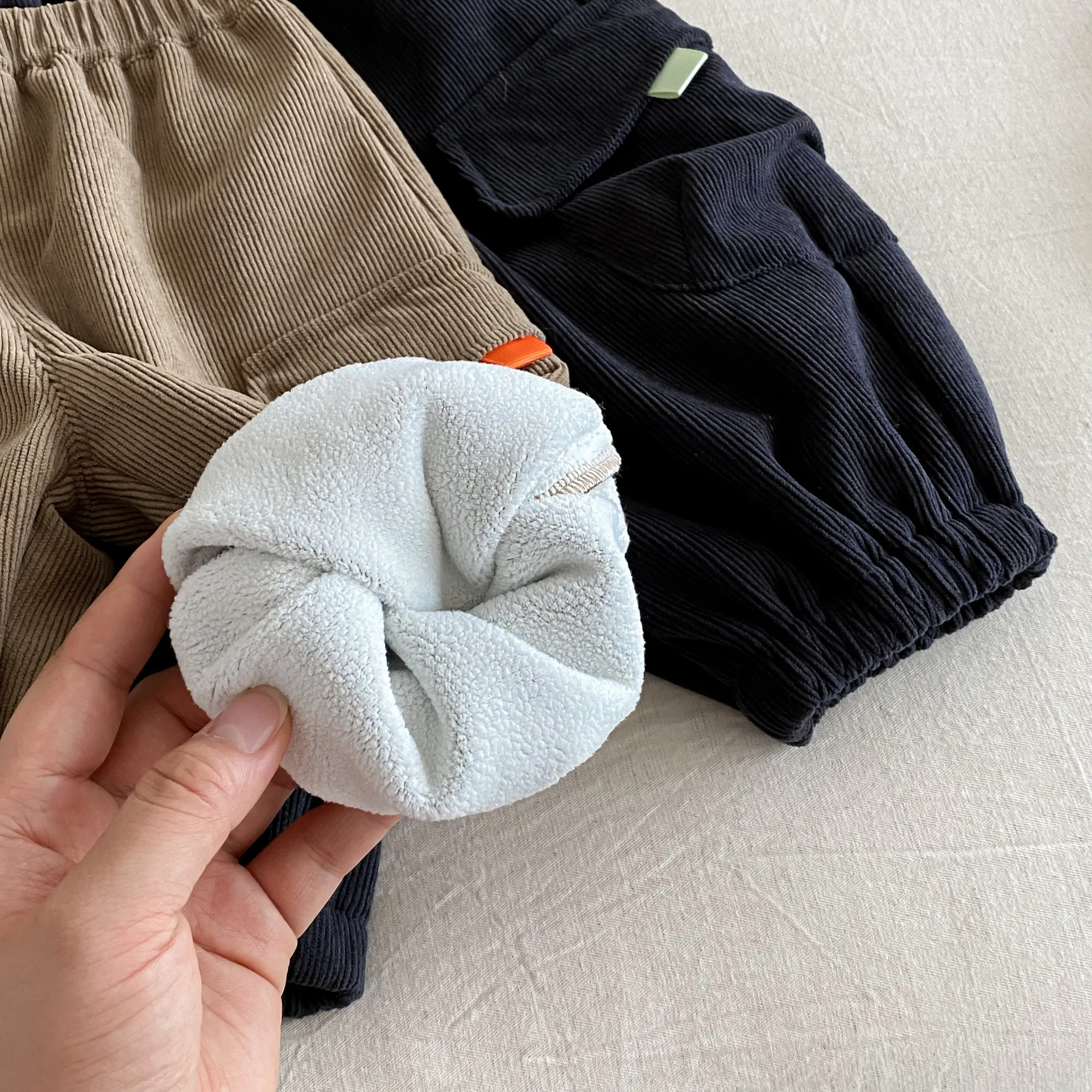 2025 طفل 0-5Y طفل رضيع سروال قصير البضائع الشتاء صوف مبطن السراويل الدافئة أطفال الأولاد ملابس الخريف قيعان فضفاضة الزي