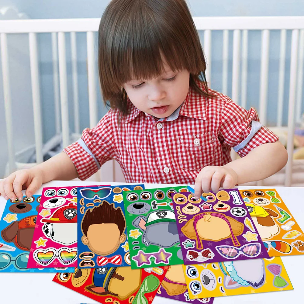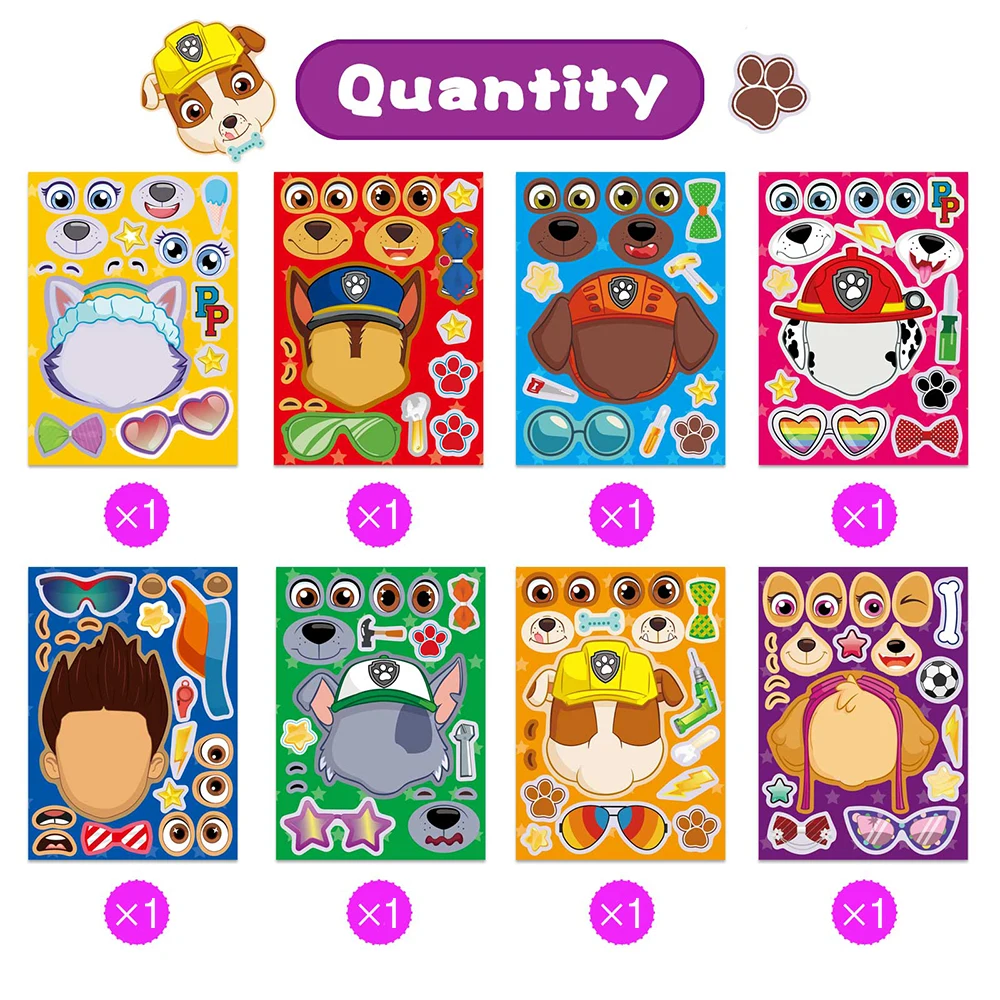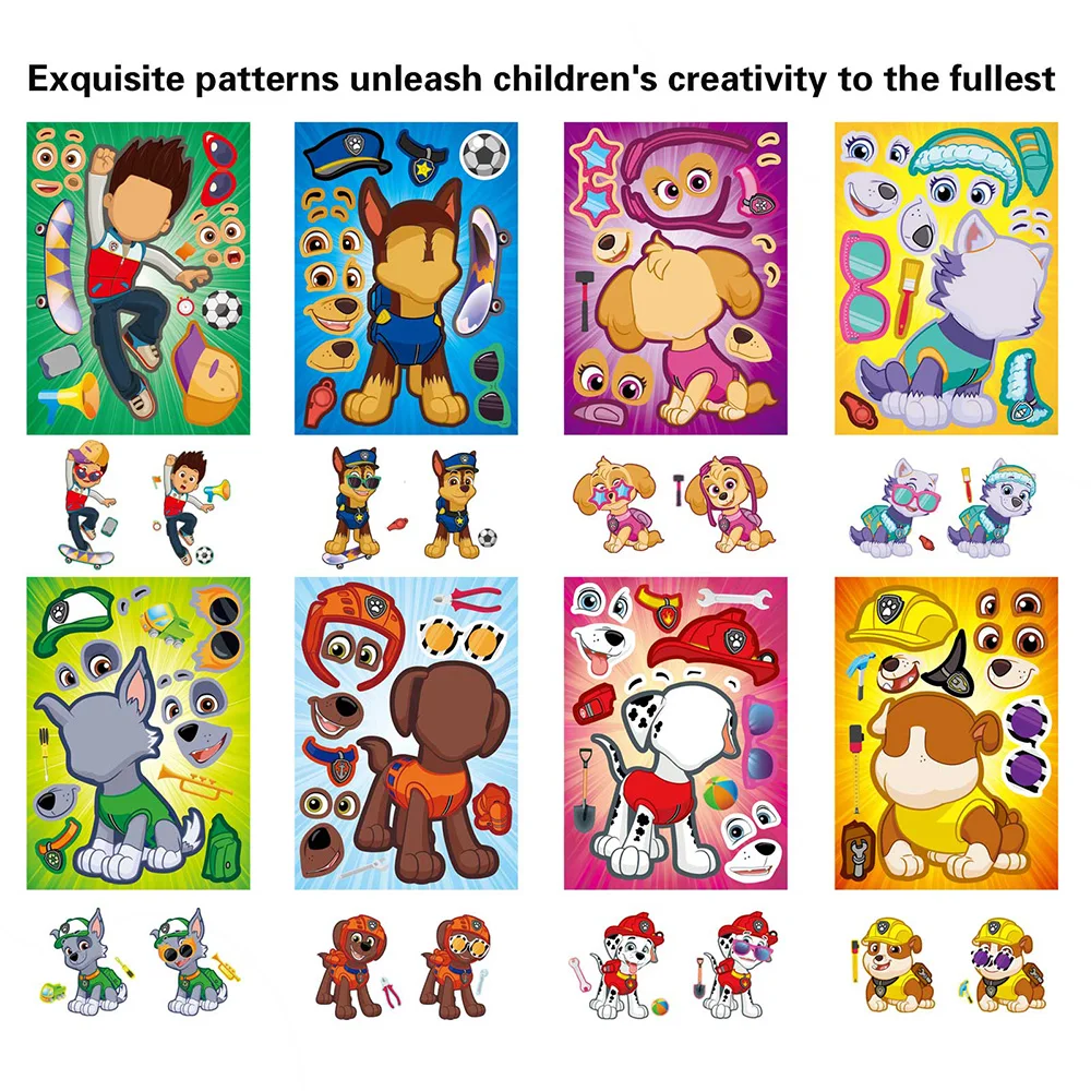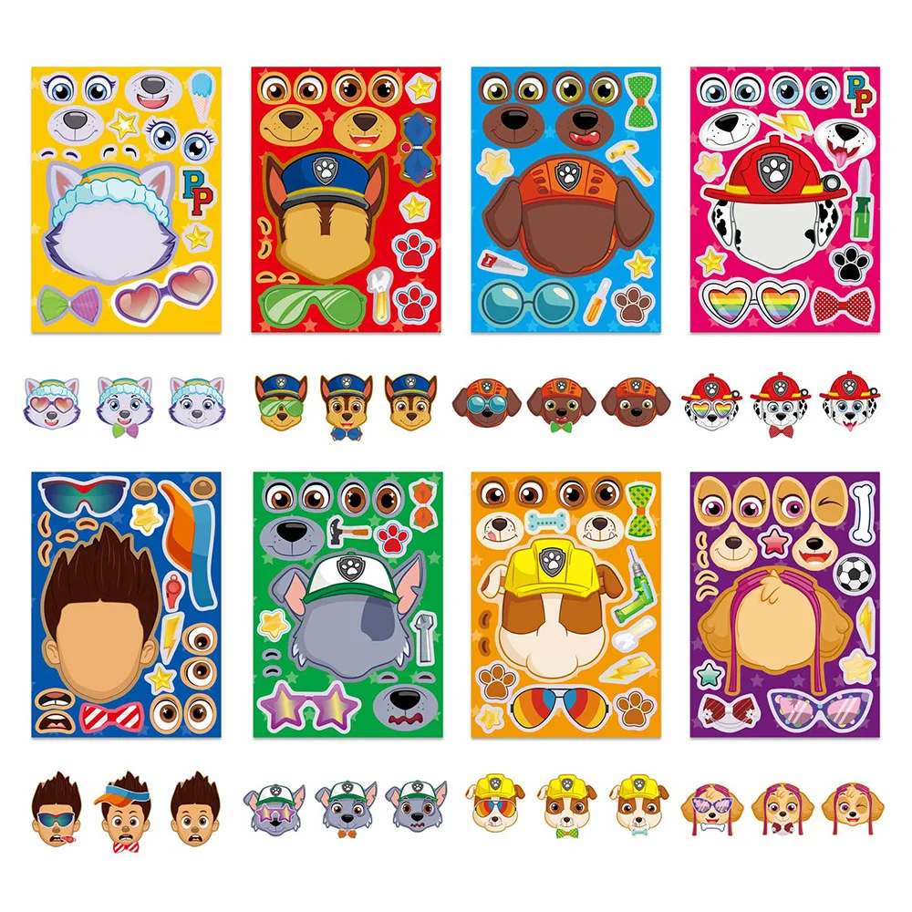 8/16 ورقة جعل وجه باو دورية لغز ملصقات الكرتون لتقوم بها بنفسك رايدر تشيس تجميع بانوراما الاطفال لعبة الأطفال الأولاد لعبة حفلة هدية