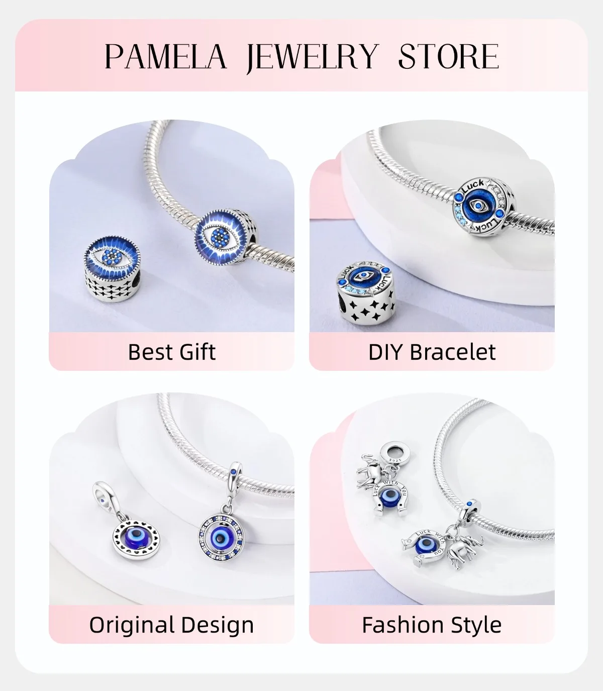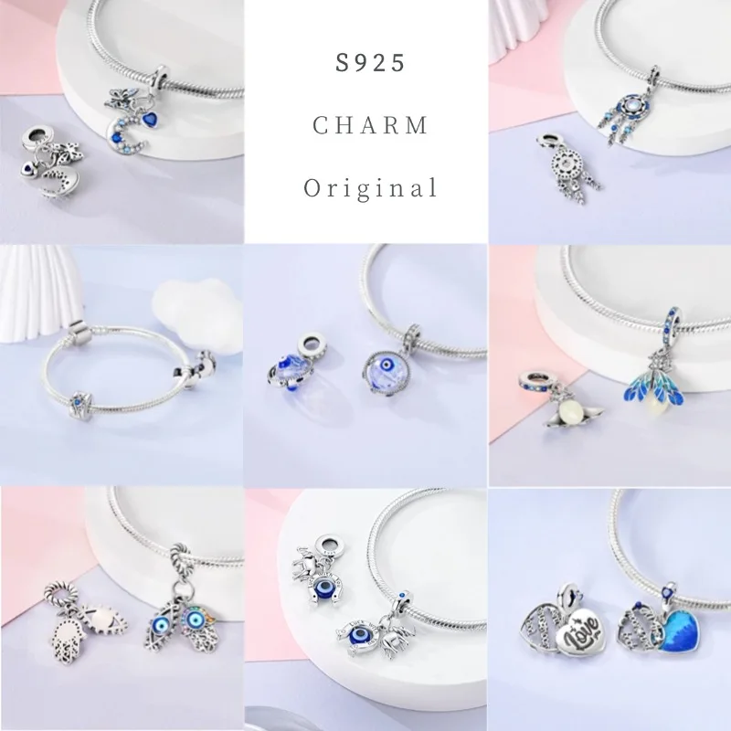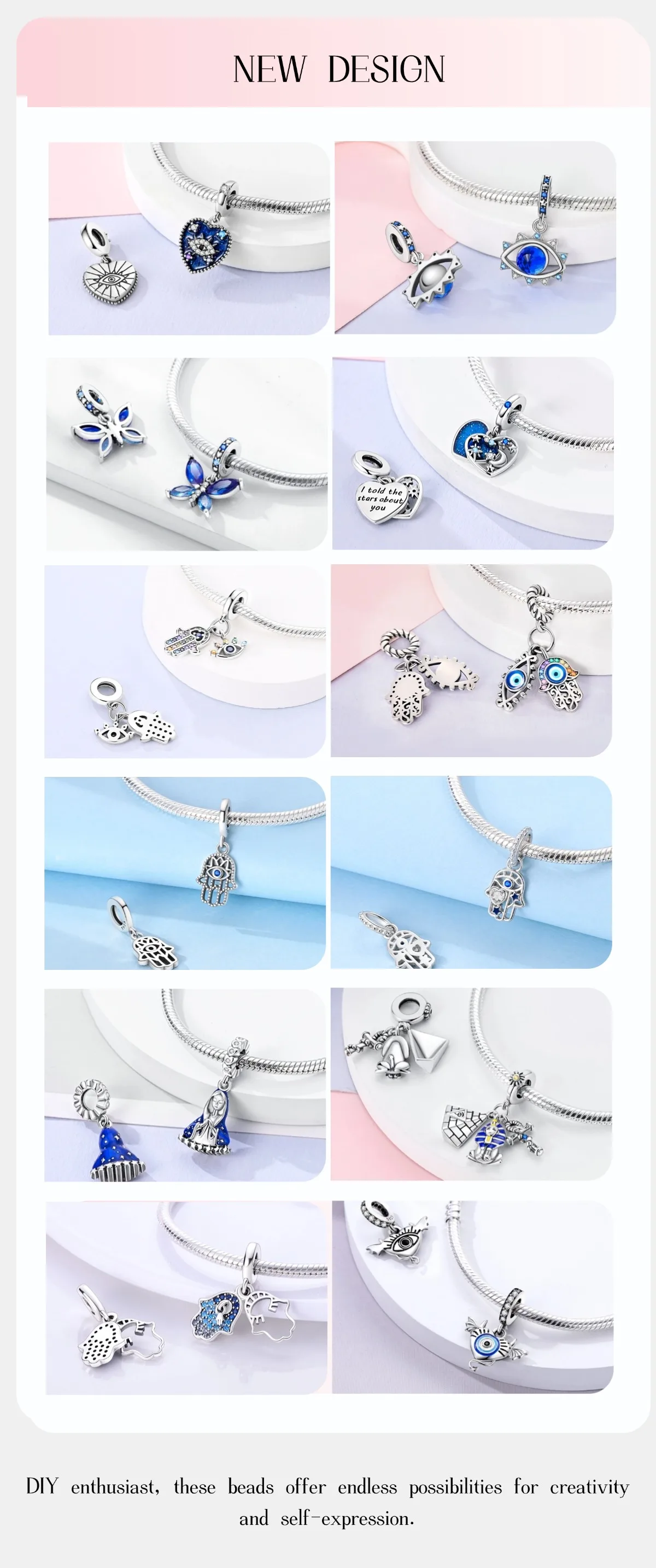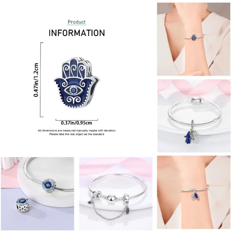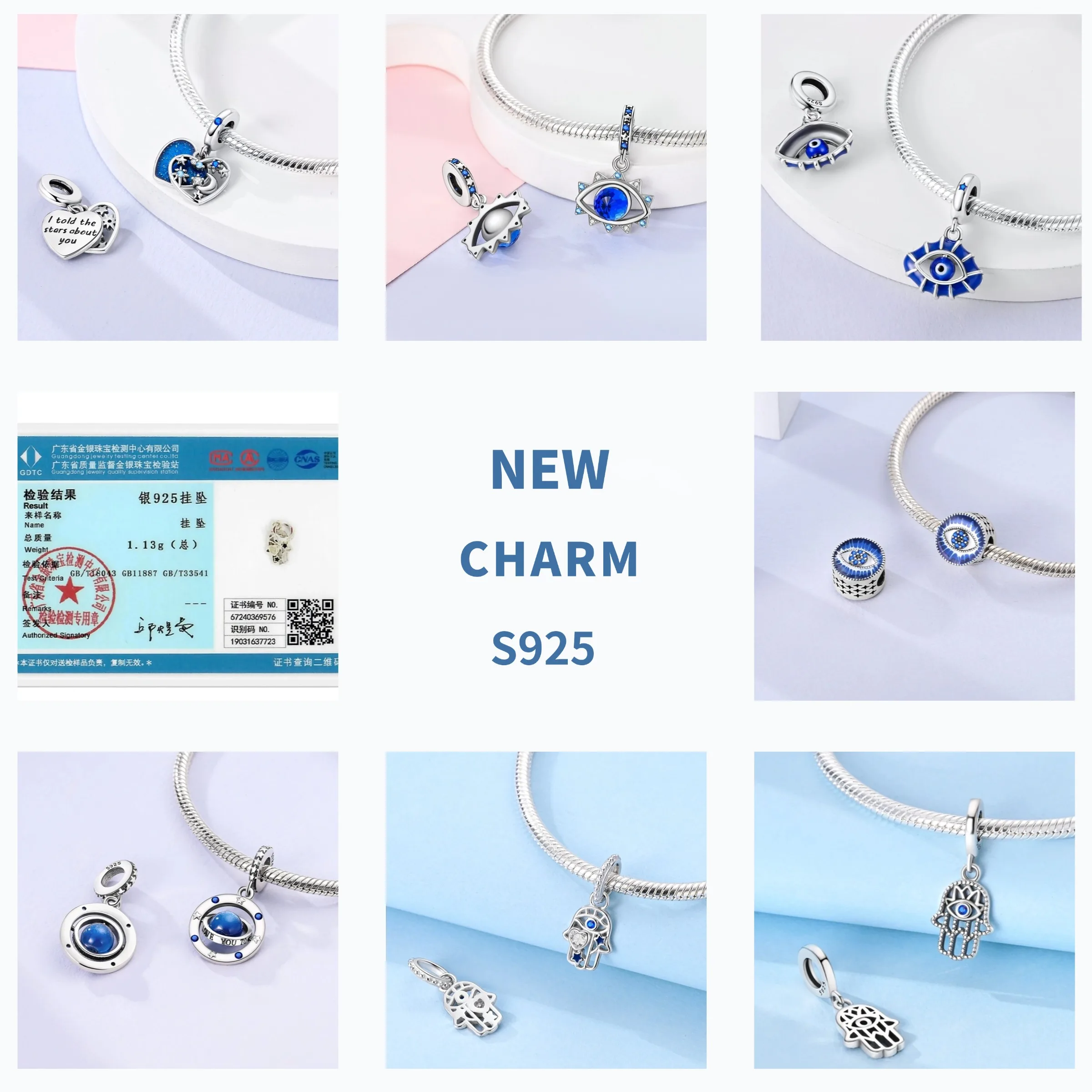 925 فضة عين الشيطان دلايات الزركون الأزرق يد فاطمة الخرز لسوار الأصلي لتقوم بها بنفسك مجوهرات عيون الشر قلادة
