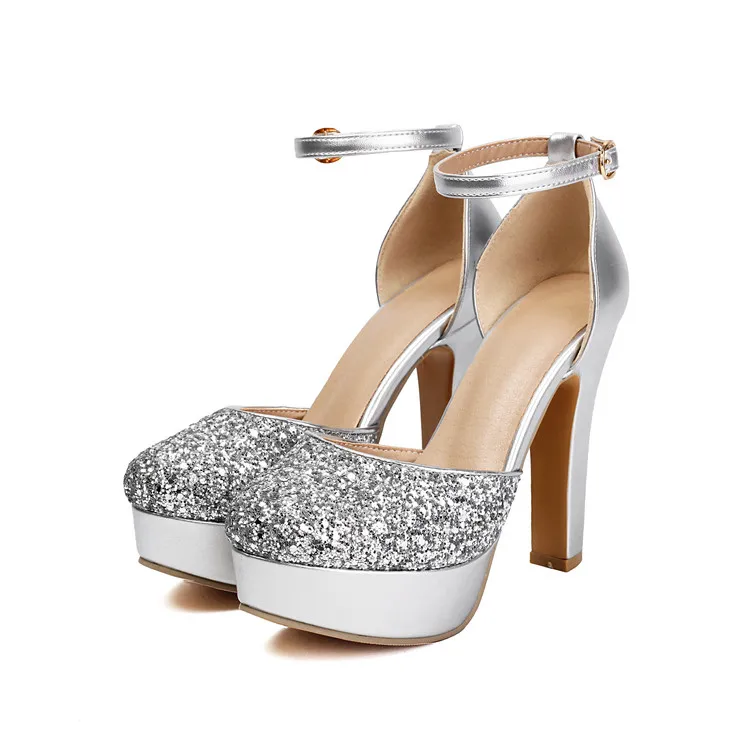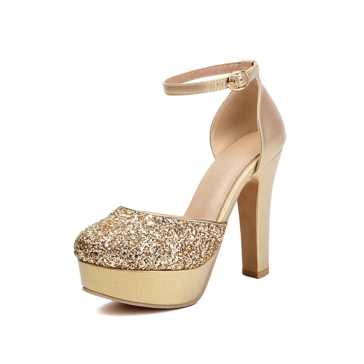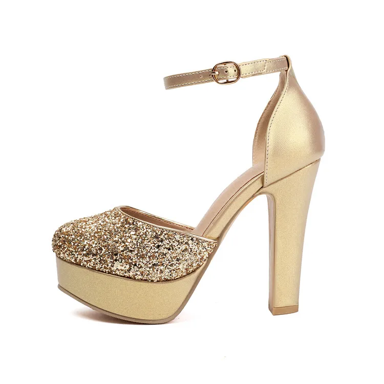 Sequins Glitter Closed Toe Bling Bling Sparkle Women Summer Block High Heels for Evening Dress Platform Sexy Gold Silver Sandals