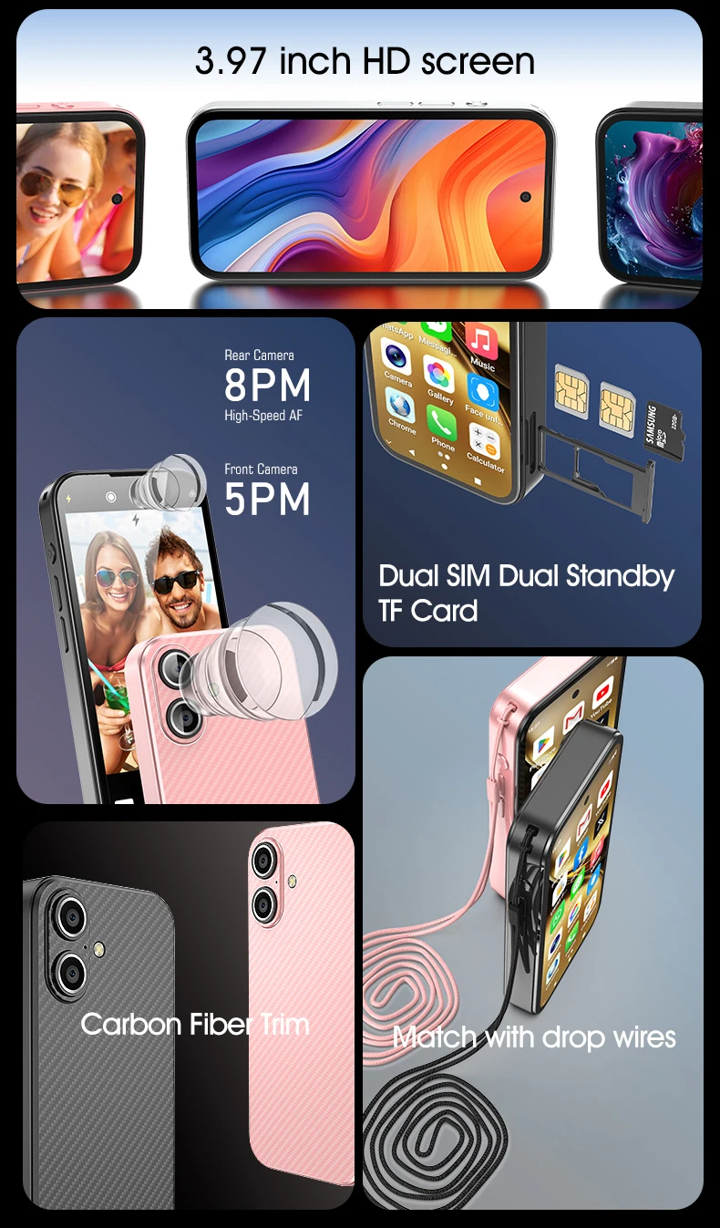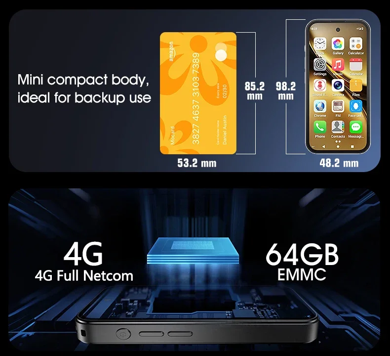 UNIWA Q333 هاتف ذكي صغير 4GB RAM 64GB ROM 4G شبكة كامل النطاق 2000mAh الهواتف المحمولة متجر جوجل بلاي معرف الوجه هاتف صغير
