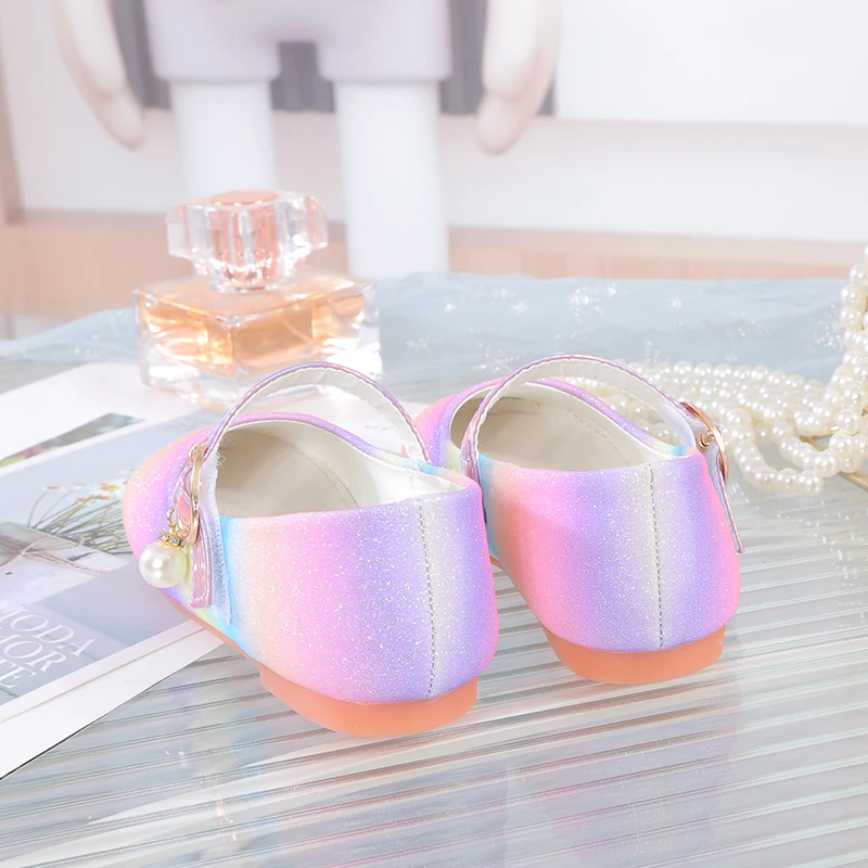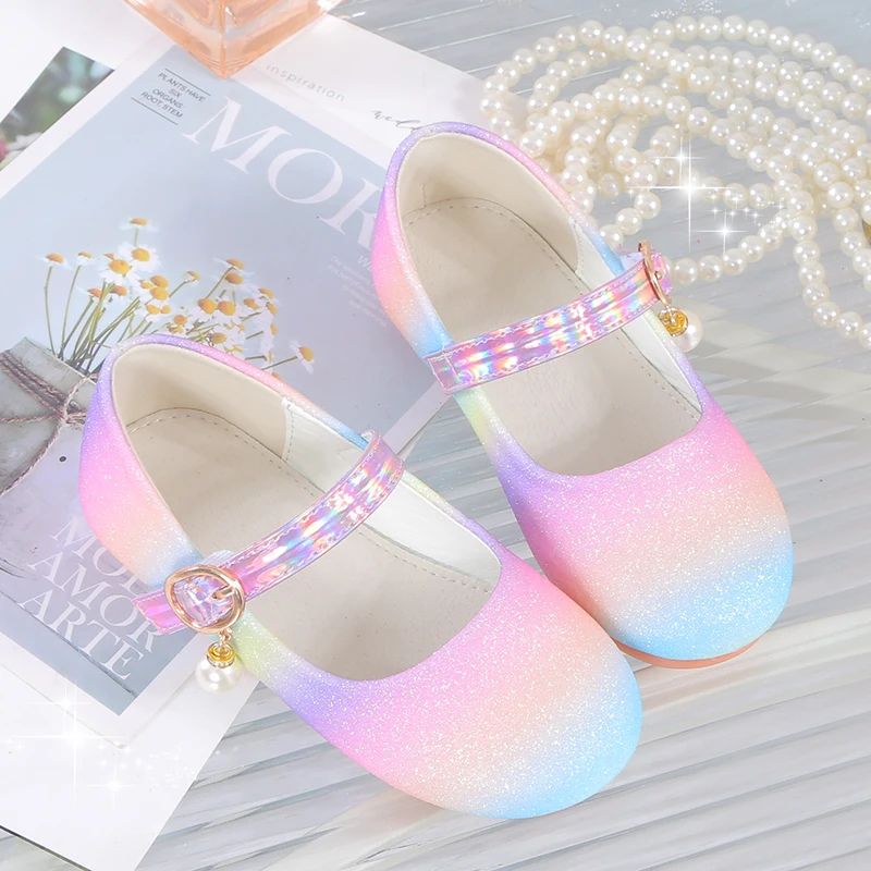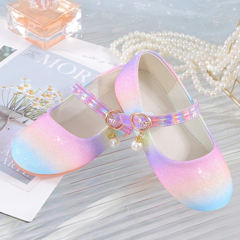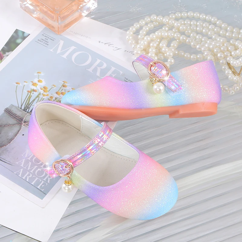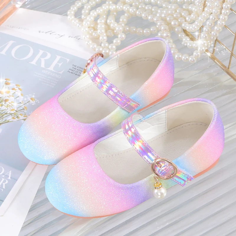 YUNICUS جديد بنات مطرزة الأميرة أحذية الأطفال أحذية مسطحة قوس قزح أحذية فتاة صغيرة أداء أحذية رقص أحذية الحفلات