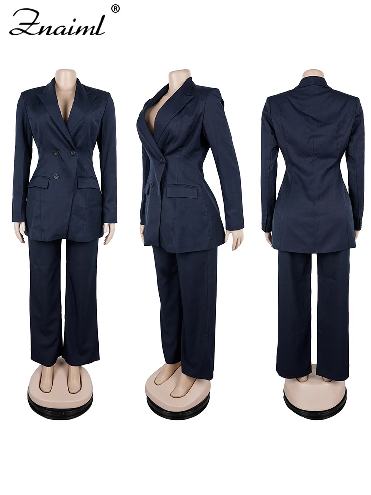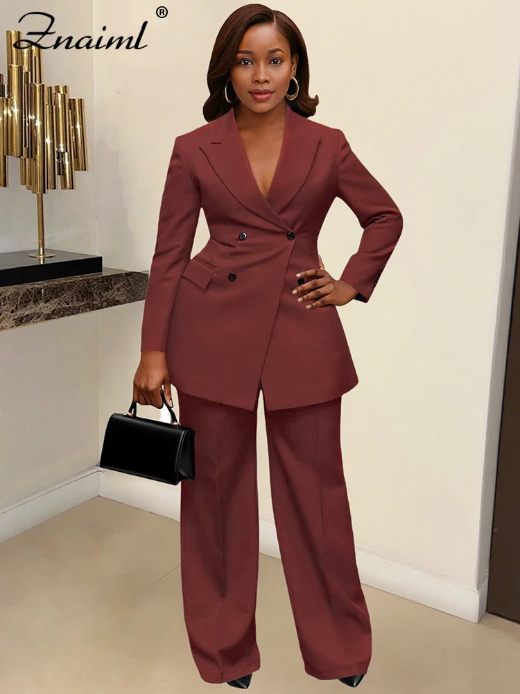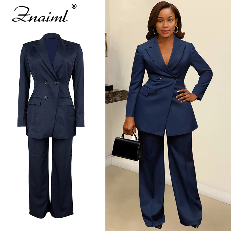 Znaiml طقم بدلة بليزر نسائي غير رسمي معاطف ضيقة بأكمام طويلة وسراويل مستقيمة قطعتين ملابس عمل أنيقة للمكتب والخريف